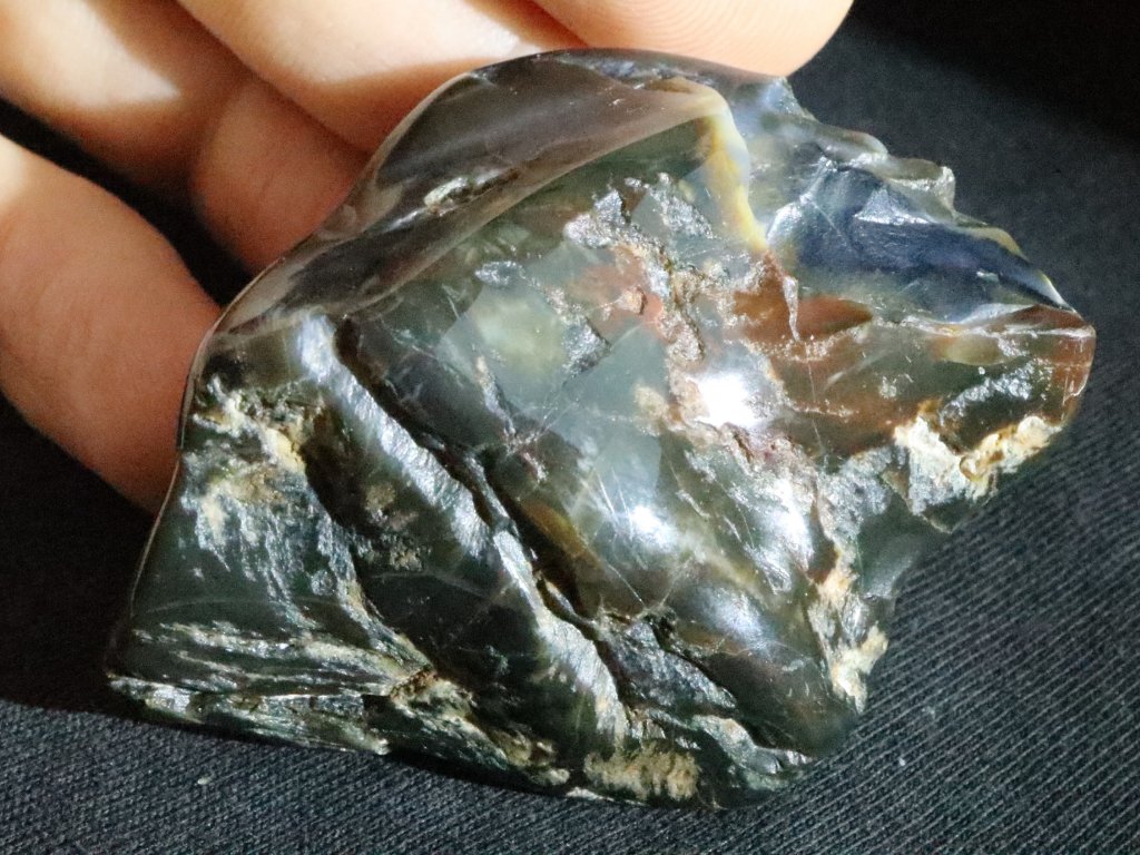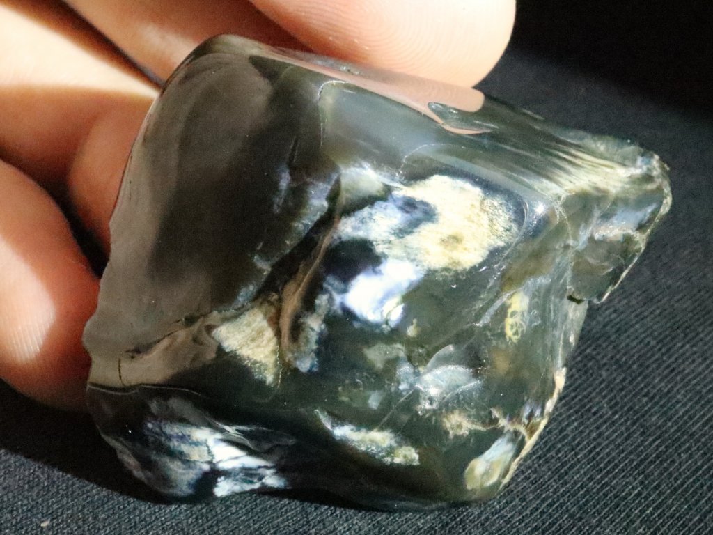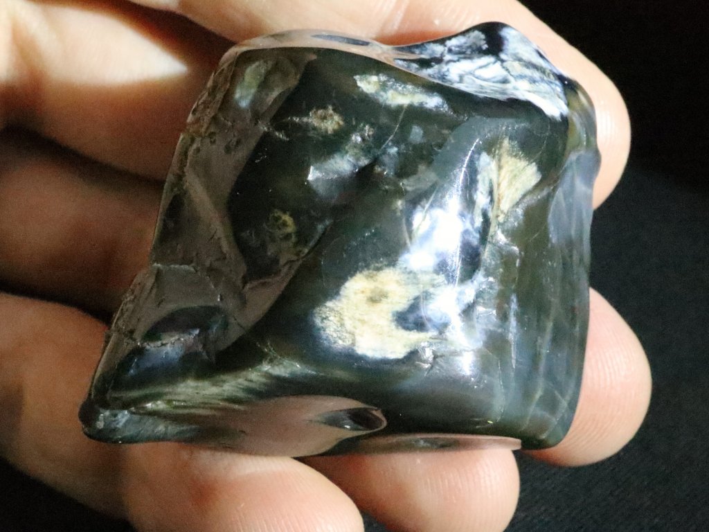 Tromlováním tento kousek získal také vysoký lesk, díky kterému může opravdu skvěle vyniknout jeho rozmanitá paleta barev či originální kresba. Nejvíce samozřejmě kvality (barva a kresba) kamínku vyniknou, pokud jej nasvítí sluneční paprsky či světlo baterky.