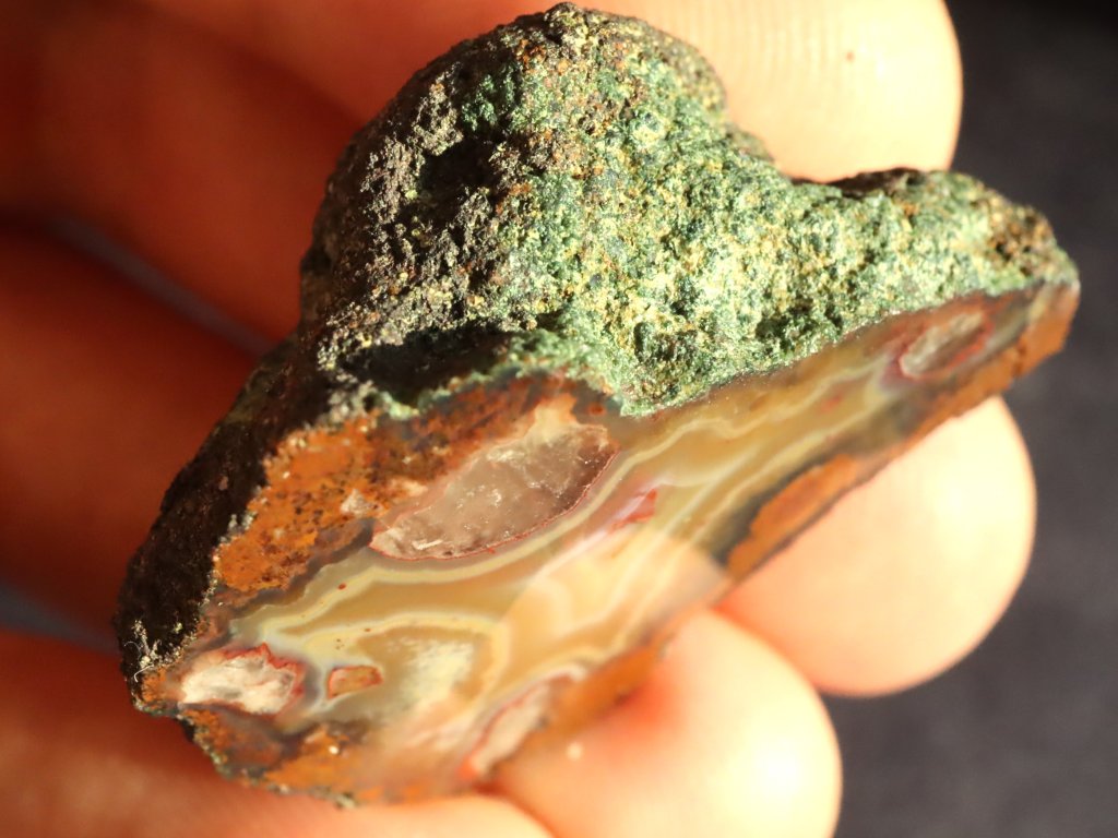 Tyto achátové pecky na první pohled tedy vypadají docela obyčejně a nepůsobí příliš atraktivně, takže by jste si jich při hledání na zoraném poli nejspíše ani nevšimli.