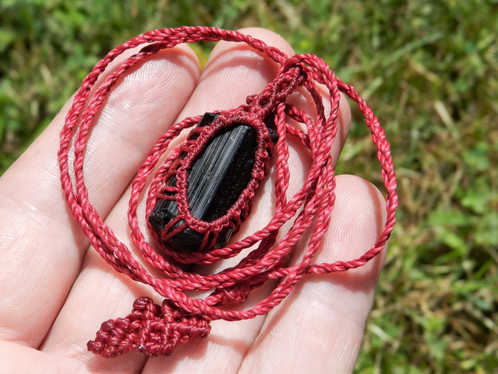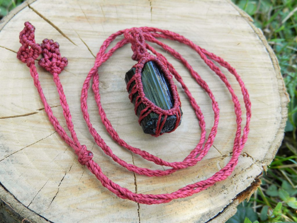 Originální macramé náhrdelník s přírodním černým turmalínem skorylem