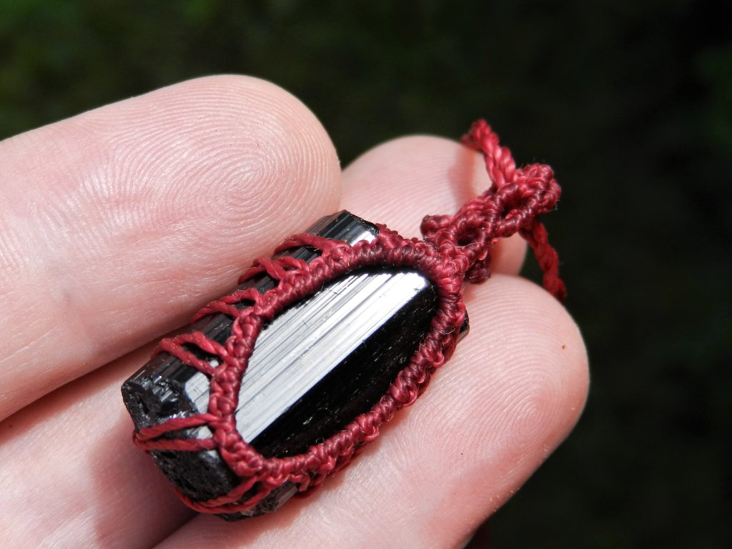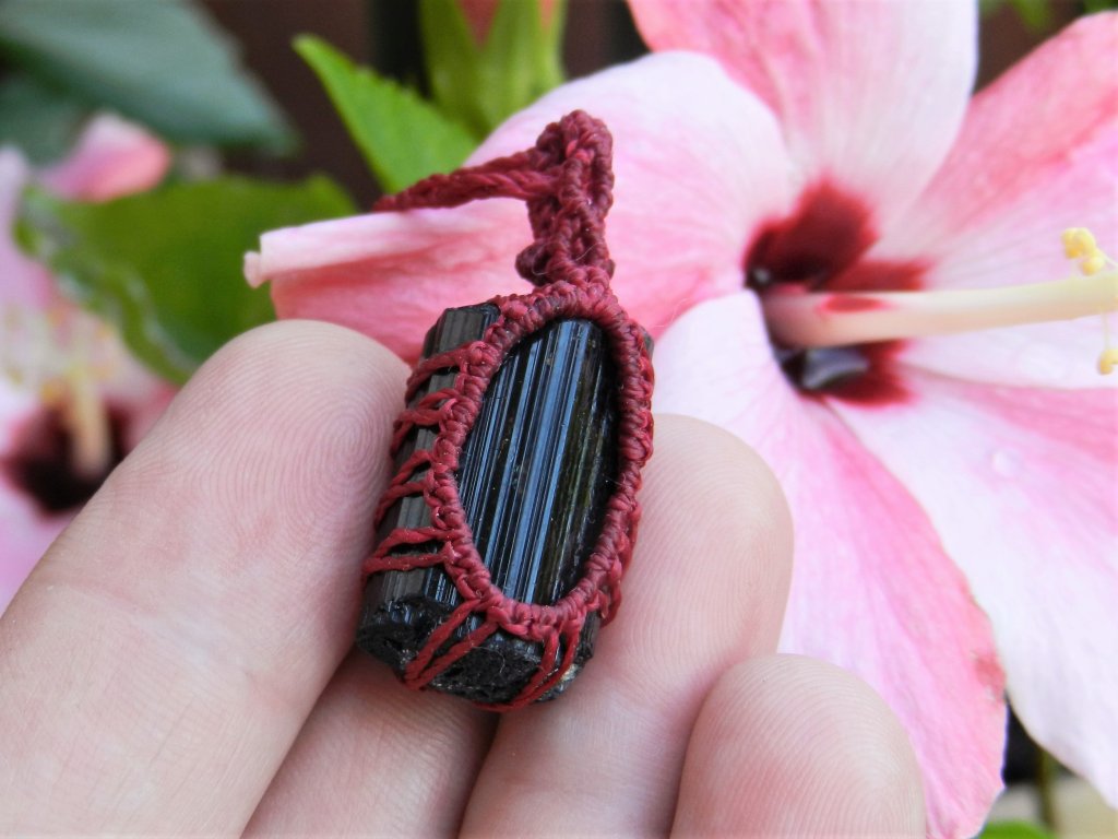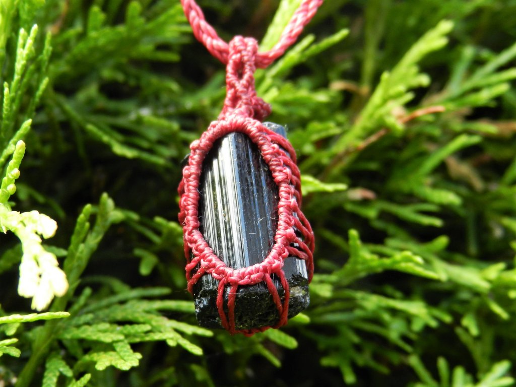 Přírodní černý turmalín skoryl v elegantním ručně dělaném macramé náhrdelníku s libovolně nastavitelným obvodem až do 66 centimetrů.