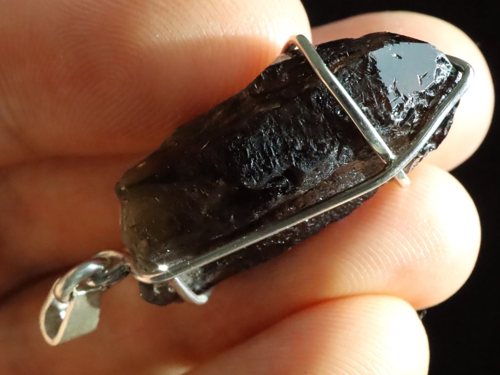 Elegantní stříbrný přívěsek s pravým českým černým morionem pocházejícím z významné mineralogické oblasti Kněževes (Vysočina) - Morion=vzácný druh velmi temně hnědé spíše až černé záhnědy.