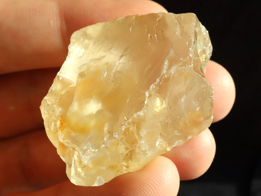Citrín hezky kombinuje matný a lesklý povrch, přičemž v lesklých pasážích můžete po důkladnějším prozkoumání objevit pěkné duhové odlesky (barevné duhy). Tyto duhy se nejlépe hledají pomocí baterky nebo na sluníčku.