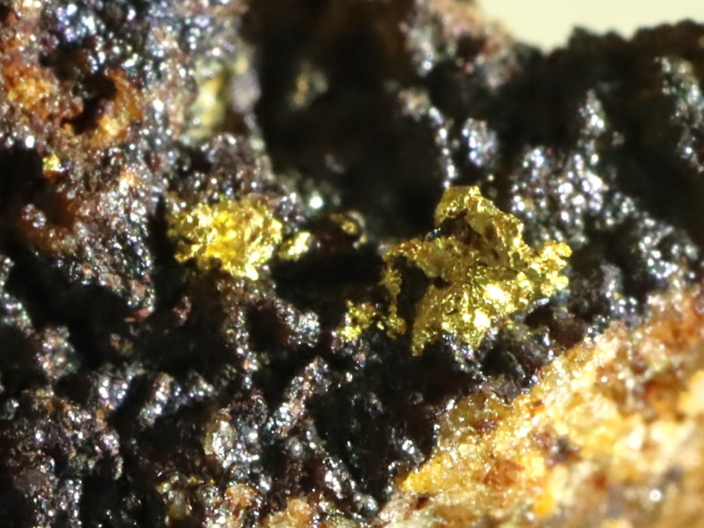 Pěkná ukázka přírodního ryzího zlata na podložce (křemenné matrix) pocházející z proslavené zlatonosné lokality Zlaté Hory (Jeseníky).