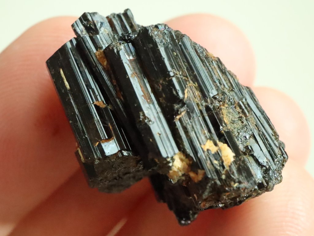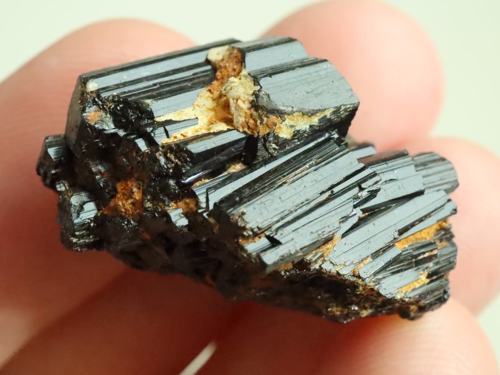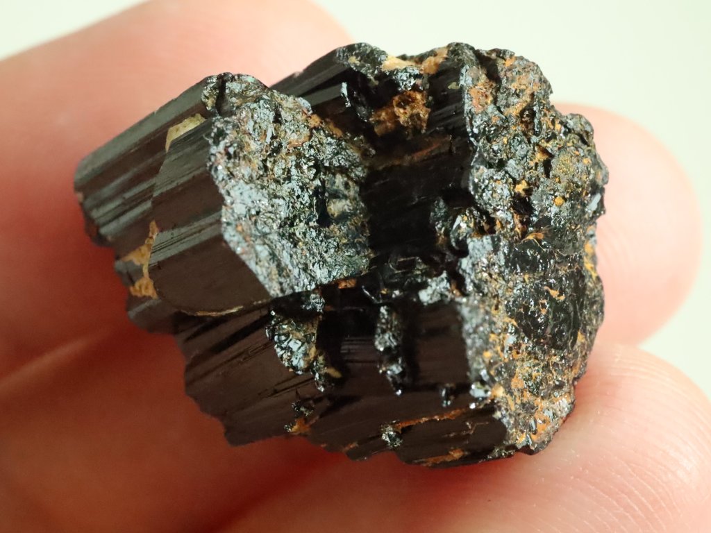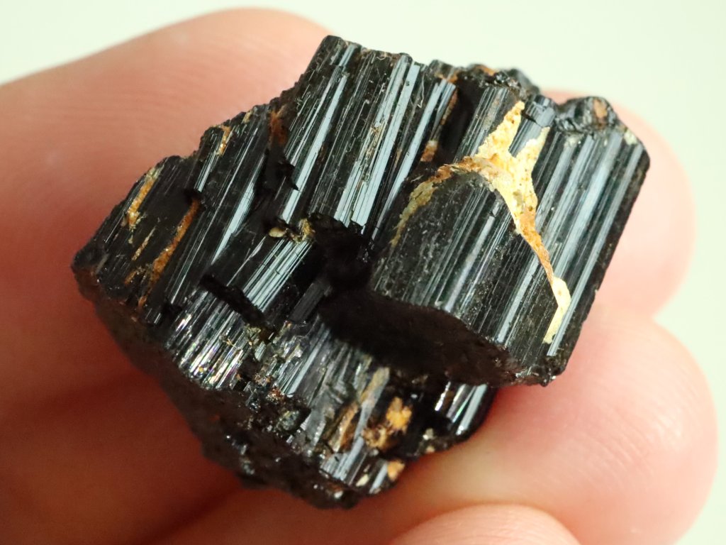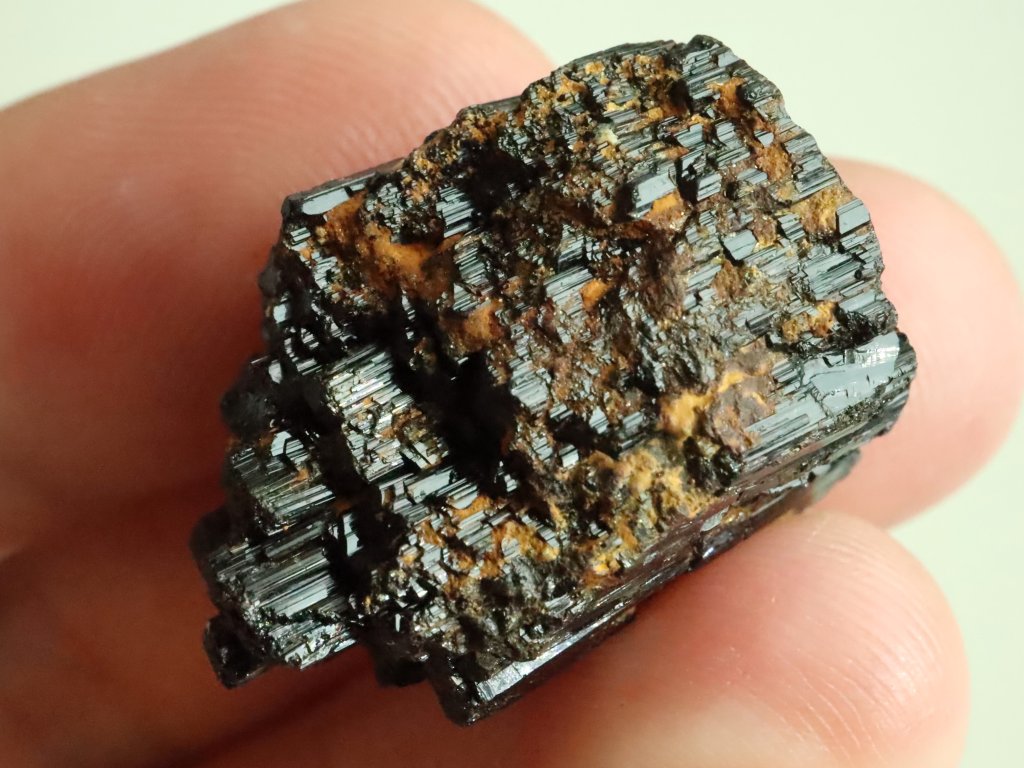 Turmalín jinak vyniká i krásným leskem a na originalitě mu přidává i "přírodní patina", kterou má na svědomí přítomnost / povlak hnědo-oranžového limonitu.
