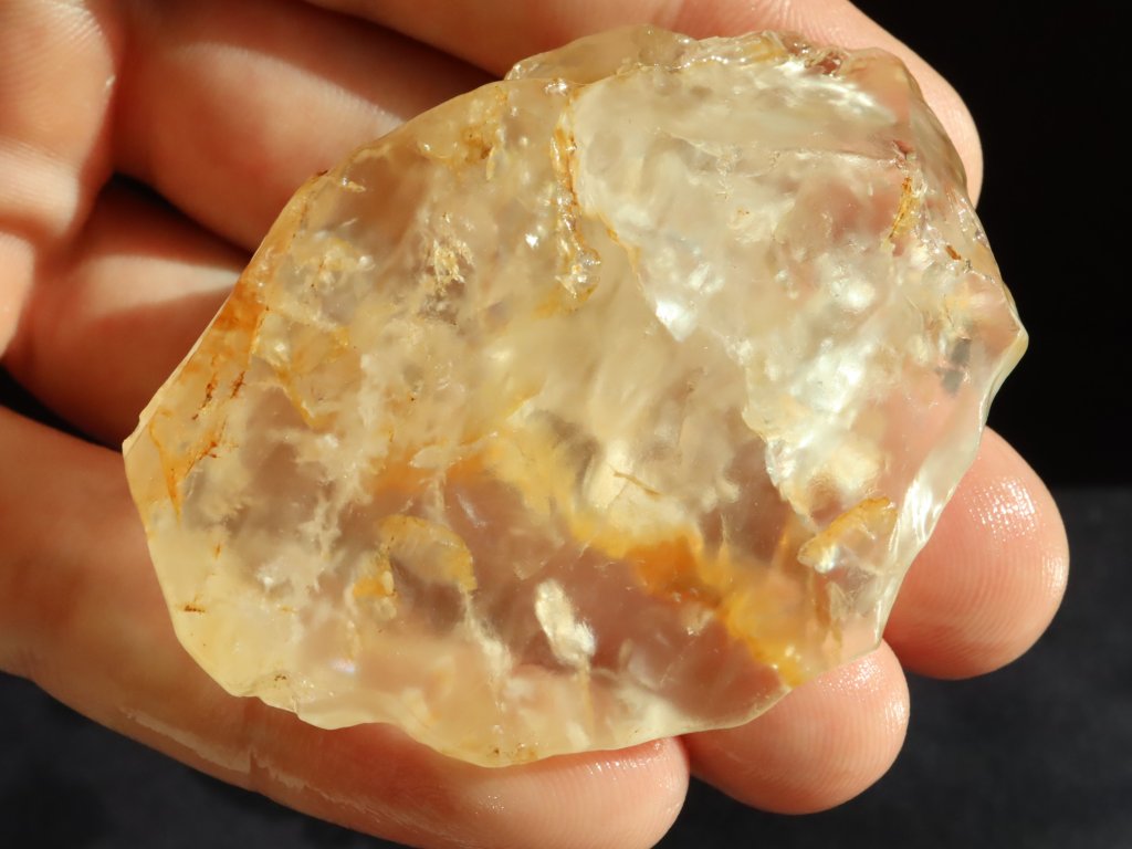 Jedná se o plochý vzorek citrínu s délkou až 6 centimetrů, který má na sluníčku velmi jemně / světle žlutý odstín. Tomuto zbarvení se mezi kamínkáři a sběrateli říká tzv. "Šampáňo" - Světlě žlutá barva šampaňského.