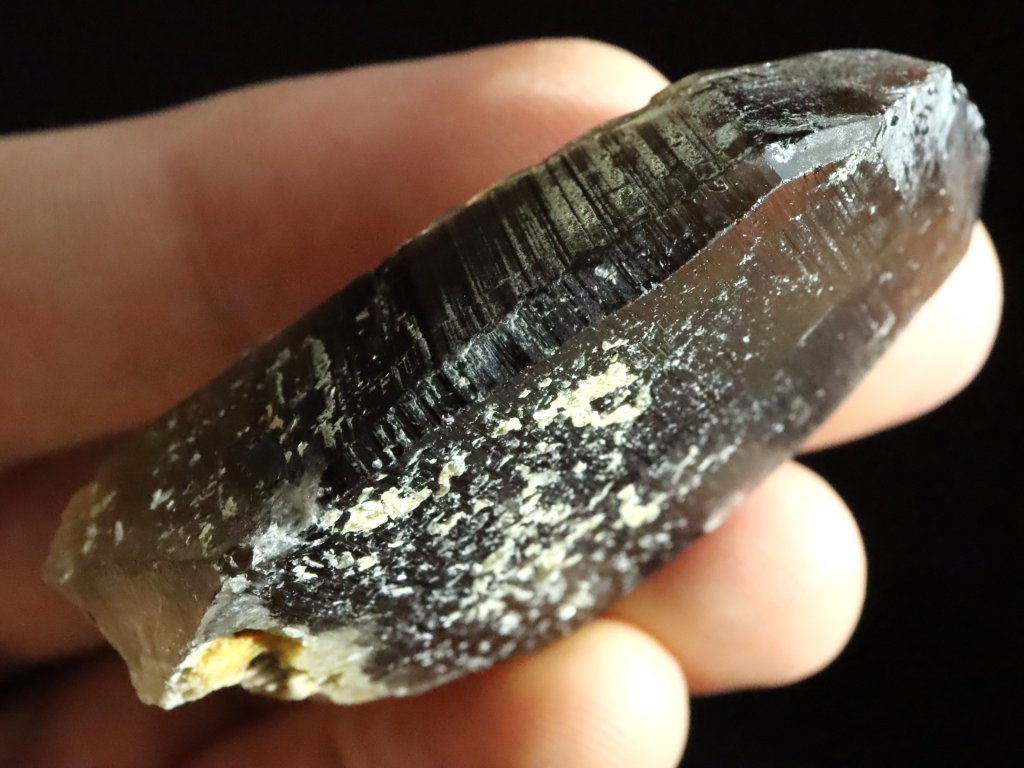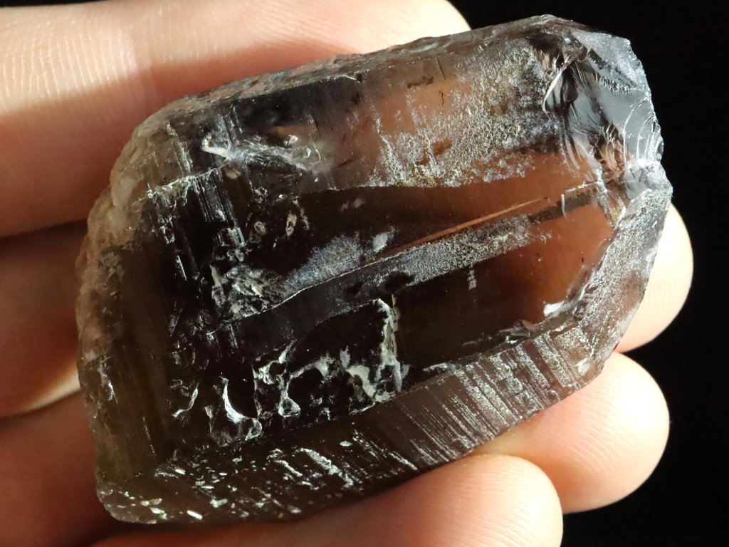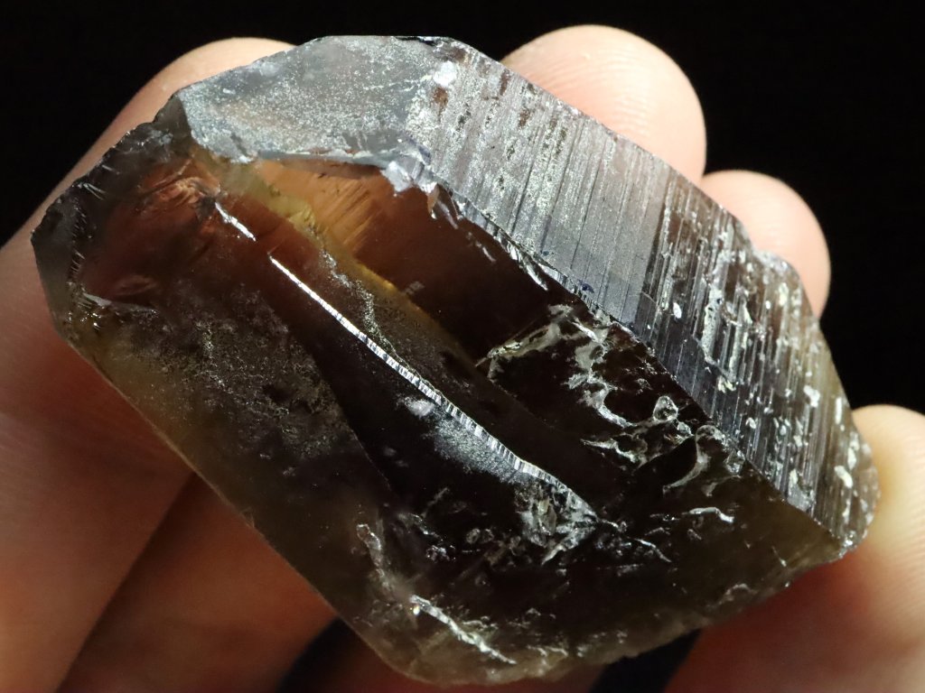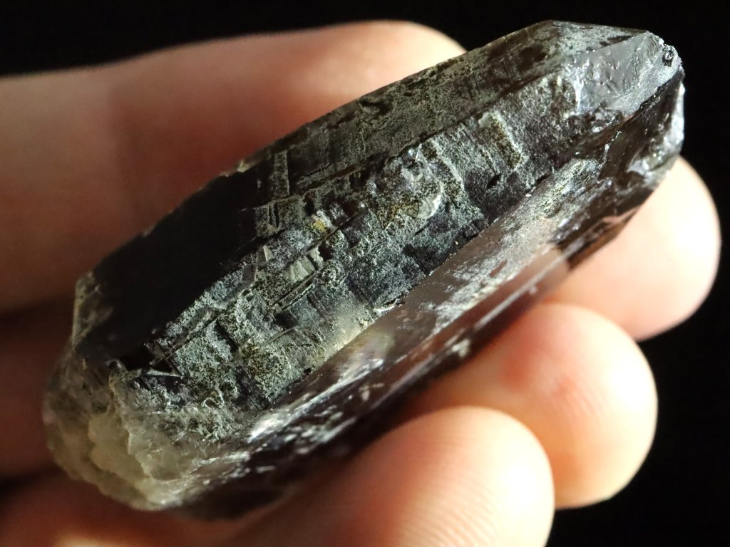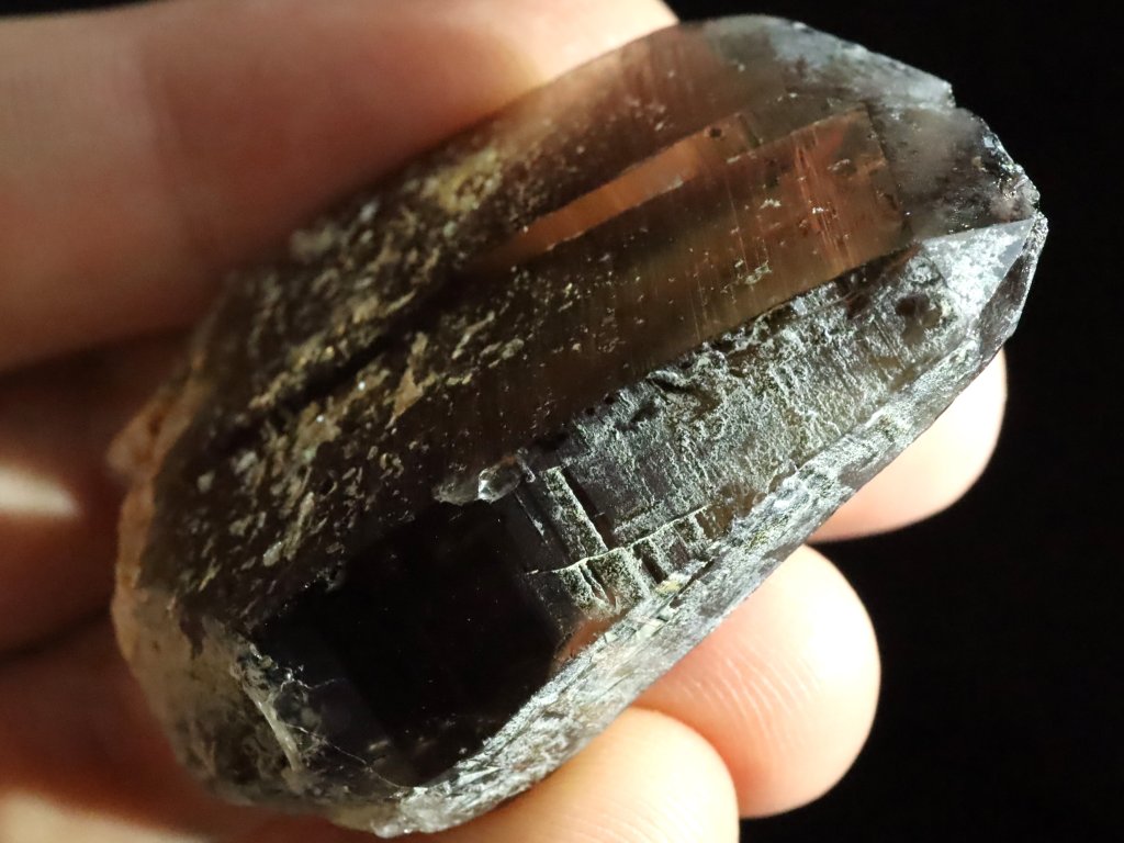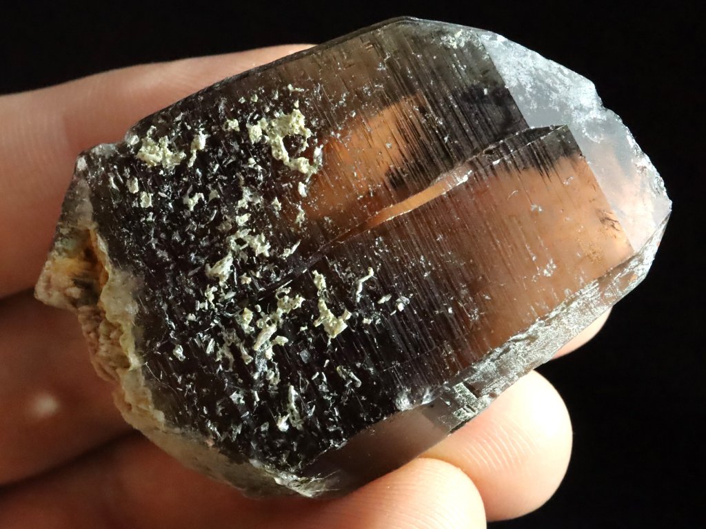 Místy je pak záhněda / morion nepatrně pokrytý povlakem albitu či ortoklasu, spatřit však můžete i drobný muskovit (stříbrnou slídu).