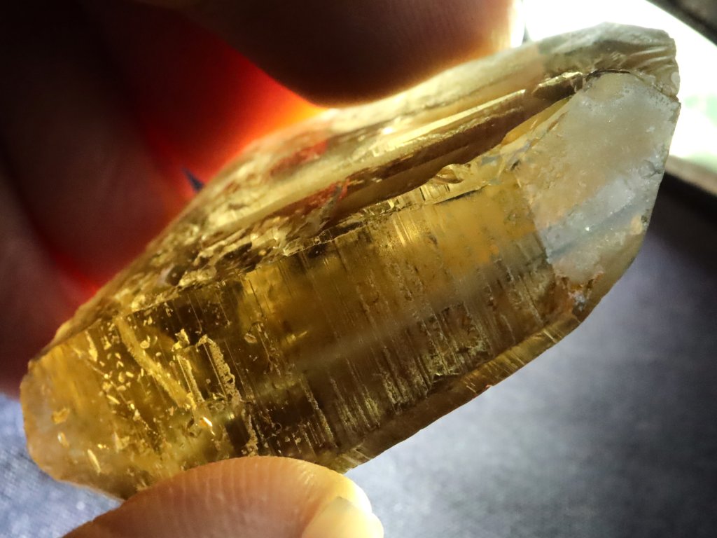 Sluníčkem či baterkou lze kamínek krásně prosvítit, solidně lze nahlédnout i do vnitřního světa, který ukrývá vysokou až drahokamovou čistotu s pouze několika nepatrnými mlhovinkami.