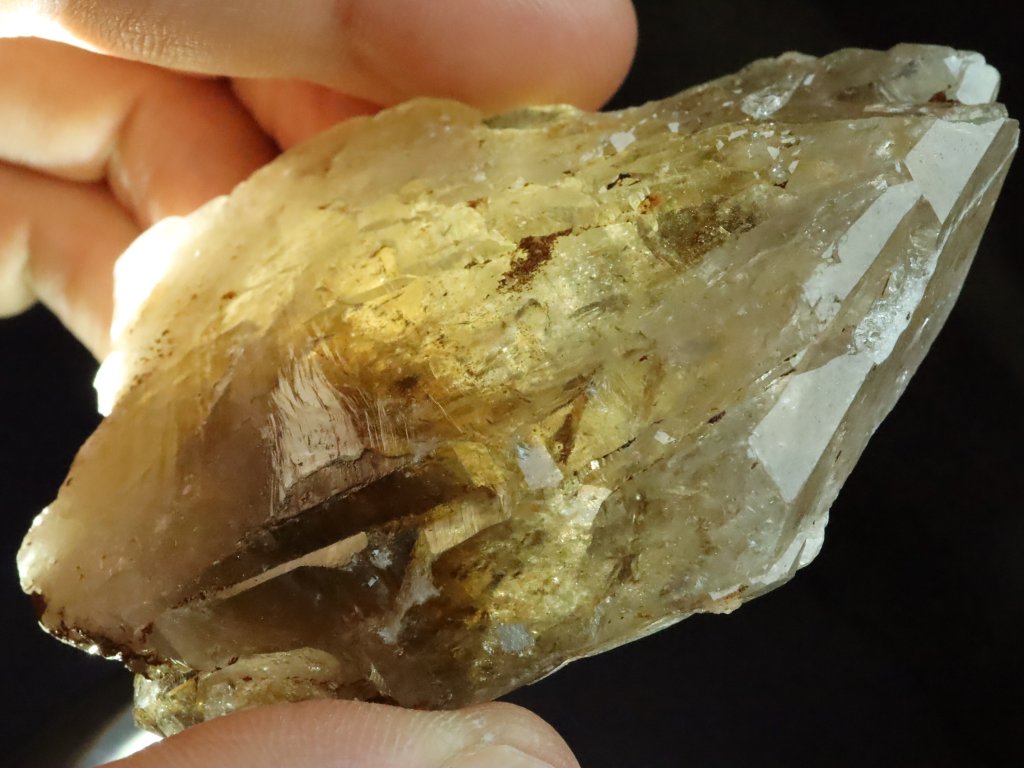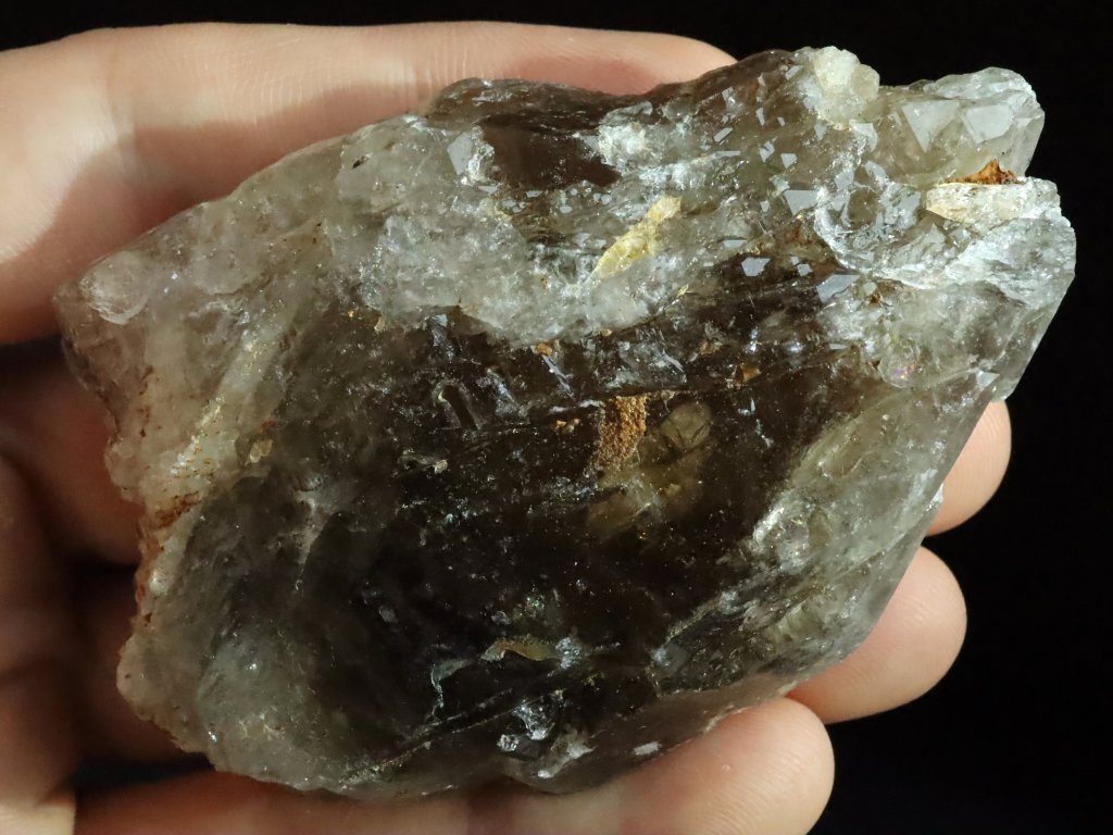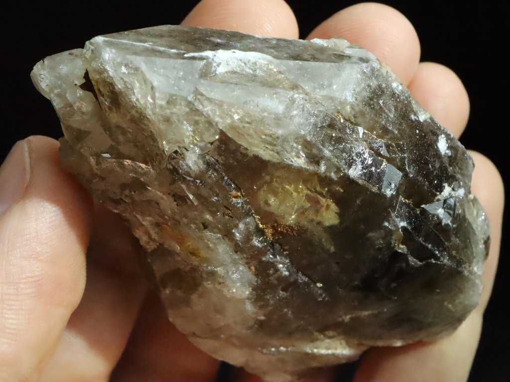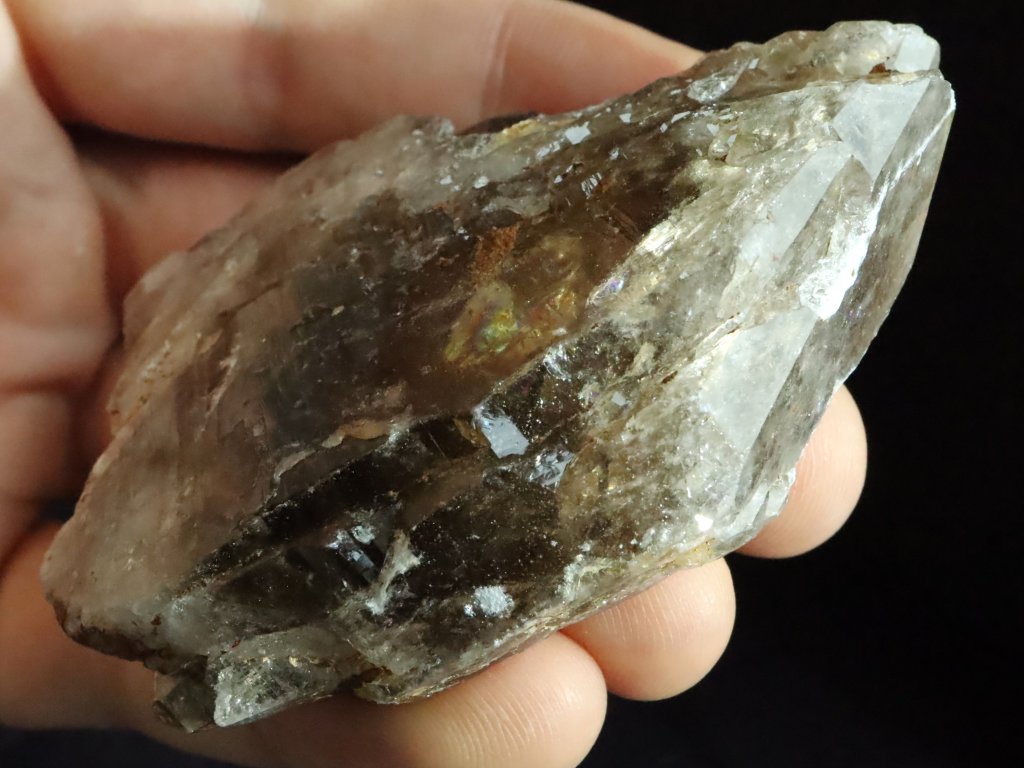 Při prosvícení záhnědy sluníčkem či silnější baterkou pak můžete celkem solidně nahlédnout do vnitřního světa krystalu s mlhovinami a peříčky.