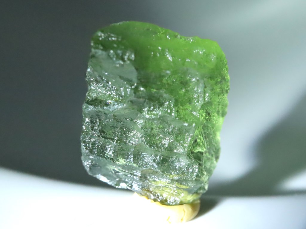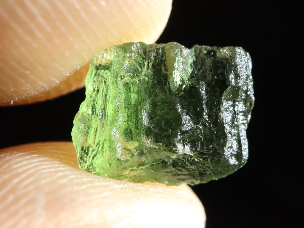 Přírodní vltavín o hmotnosti 0,54 gramu pocházející z oblasti jižních Čech.