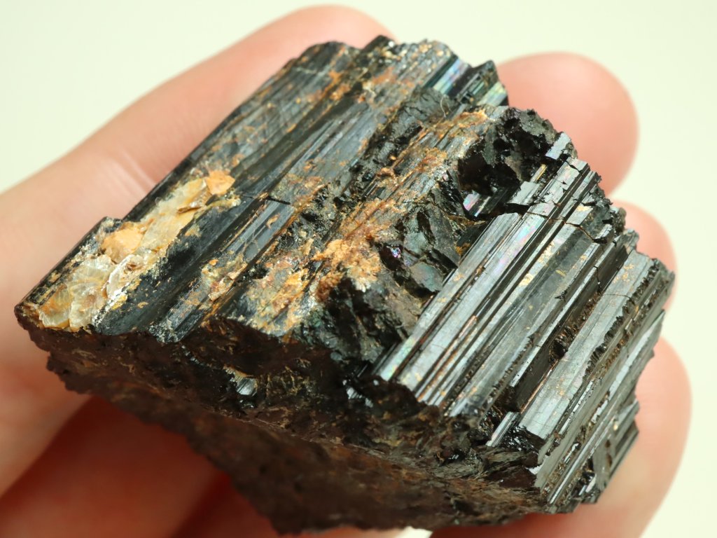Pořádný kus přírodního černého turmalínu skorylu, který pochází z vyhlášeného kamínkářského naleziště Bory (Vysočina).