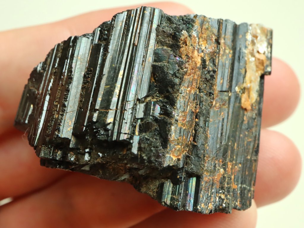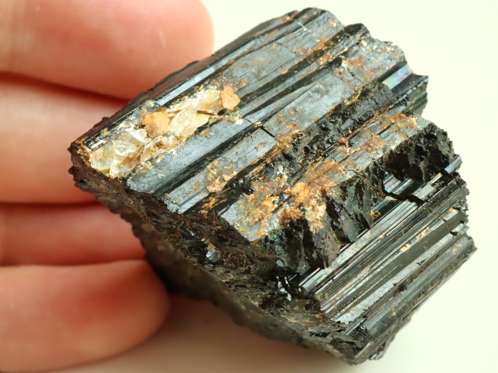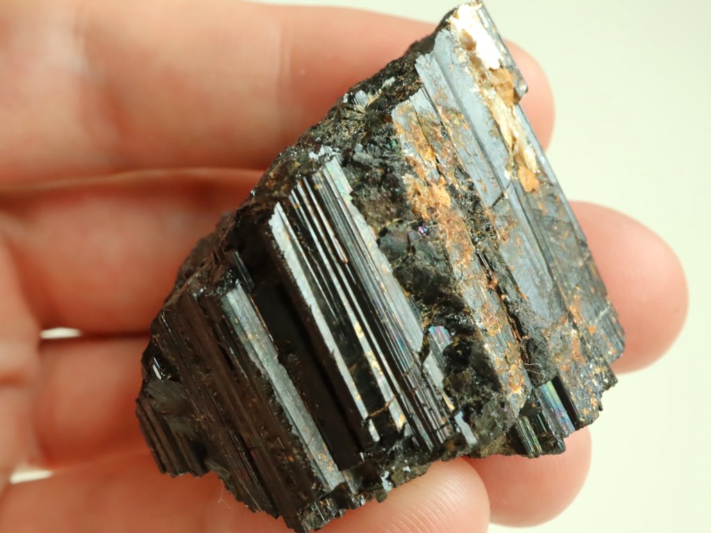 Turmalín je částečně lesklý a po obvodu má i hezké jemné rýhování.