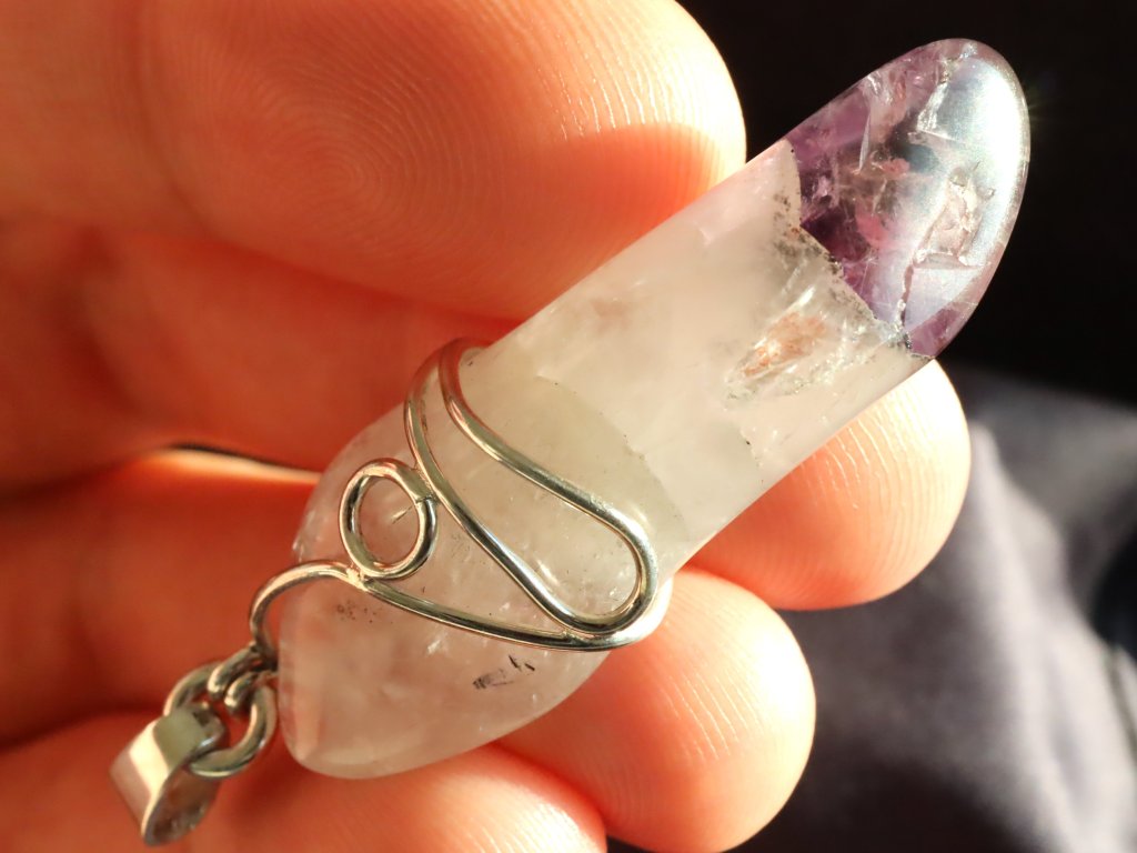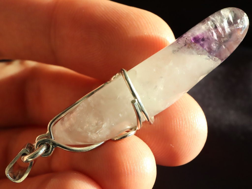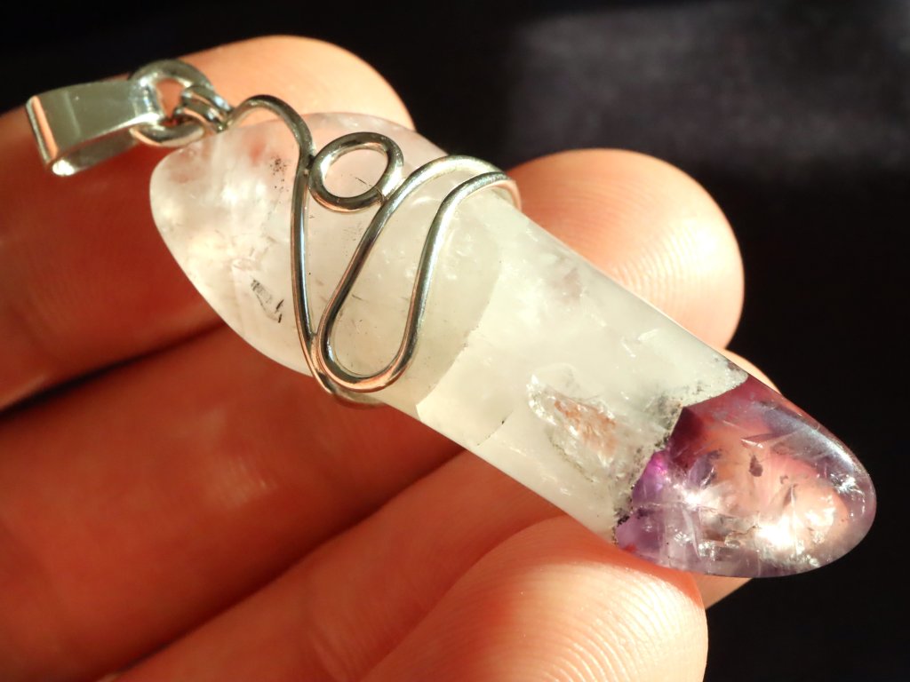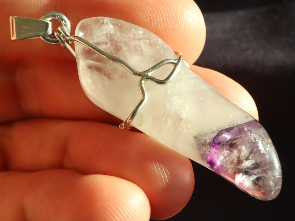 Uchycení kamene ve stříbře je čistě ruční práce, nejedná se tedy o žádnou strojní velkovýrobu a každý přívěsek je originál. Ametyst navíc není vrtaný ani žádným způsobem přilepený. Kamínek je pouze precizně opleten stříbrným drátkem, který pro něj vytvoří tzv. klícku, ve které bezpečně drží. Dražší přívěsky se navíc pyšní složitějším a propracovanějším řemeslným zpracováním či jsou decentně zdobené například kapičkami stříbra či jinými zajímavostmi. Mnohdy jsou v nich také zasazeny unikátní kameny.