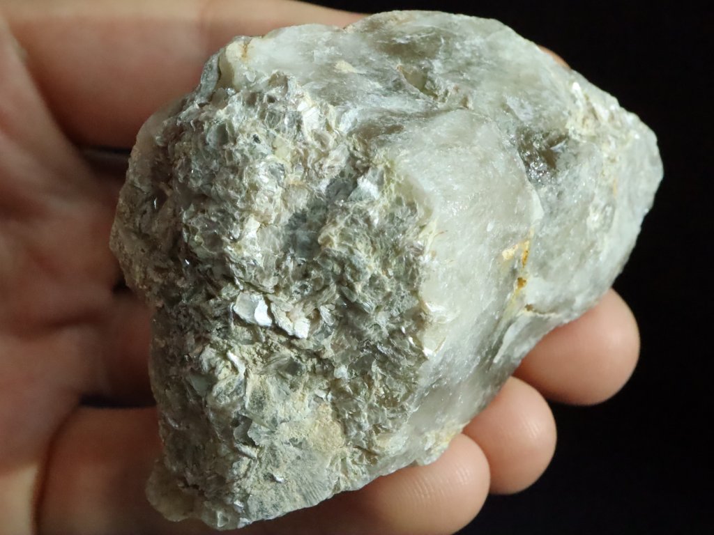 Podložku neboli mateční horninu zde tvoří šedý křemen. Ten je v jedné pasáži zdobený zarostlými lupenitými krystalky stříbrné slídy (Muskovitem), najdete tu však i stopy ortoklasu.