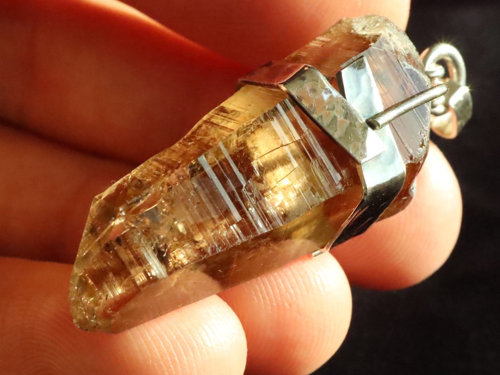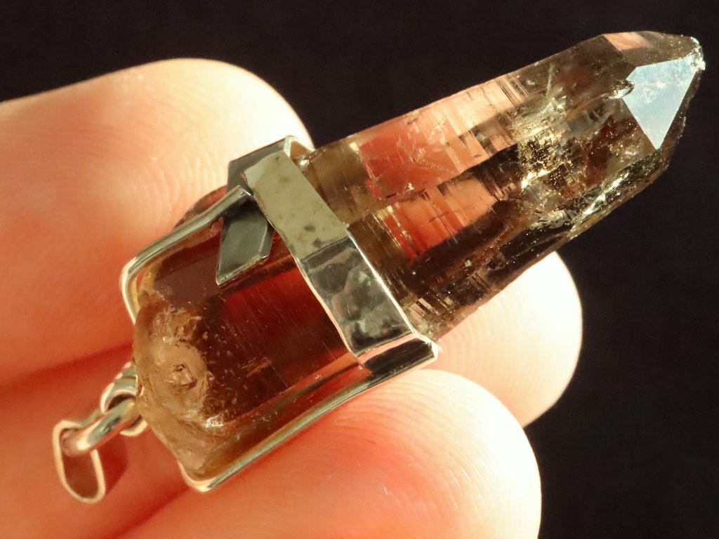 V přívěsku je zasazený velmi kvalitní a estetický krystalek záhnědy, který je moc hezky zachovalý.
