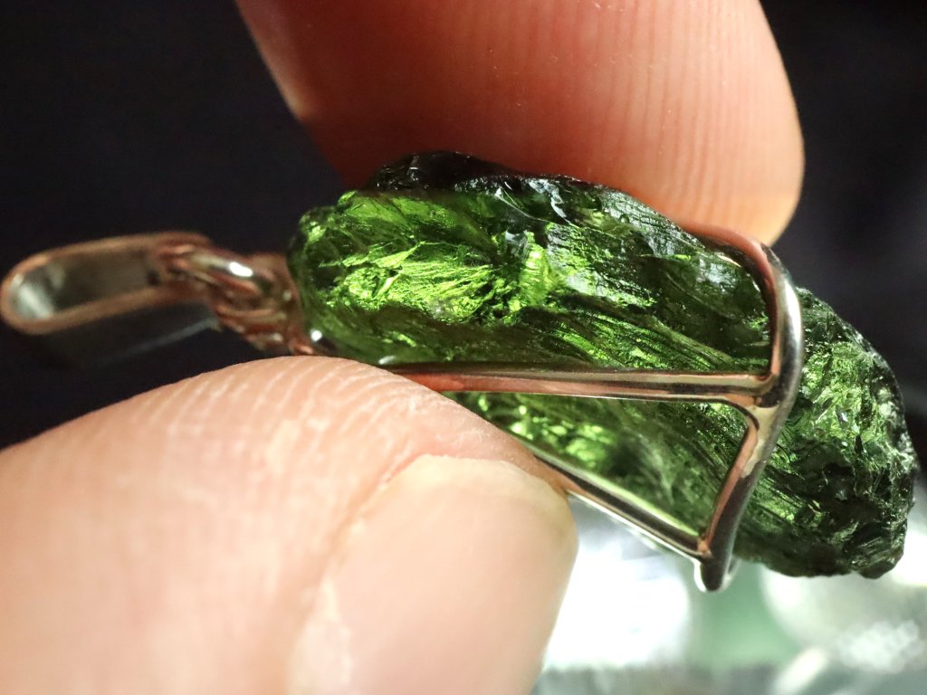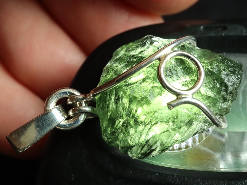 Uchycení kamene ve stříbře je čistě ruční práce, nejedná se tedy o žádnou strojní velkovýrobu a každý přívěsek je originál. Vltavín navíc není vrtaný ani žádným způsobem přilepený. Kamínek je pouze precizně opleten stříbrným drátkem, který pro něj vytvoří tzv. klícku, ve které bezpečně drží. Dražší přívěsky se navíc pyšní složitějším a propracovanějším řemeslným zpracováním či jsou decentně zdobené například kapičkami stříbra či jinými zajímavostmi. Mnohdy jsou v nich také zasazeny unikátní kameny.