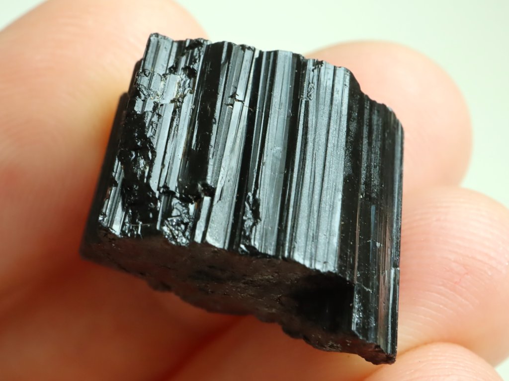 Atraktivní kousek surového černého turmalínu skorylu nalezený na věhlasné šutrácké lokalitě Pikárec v oblasti Vysočiny.