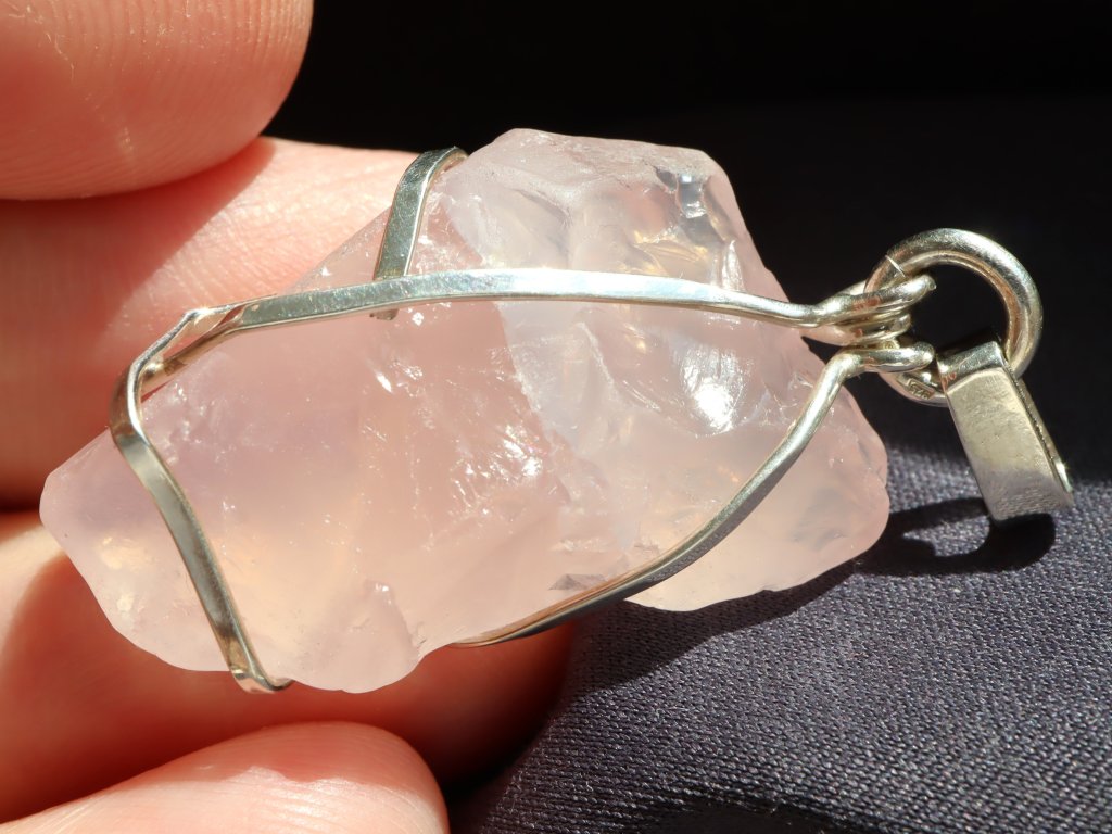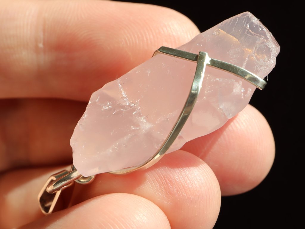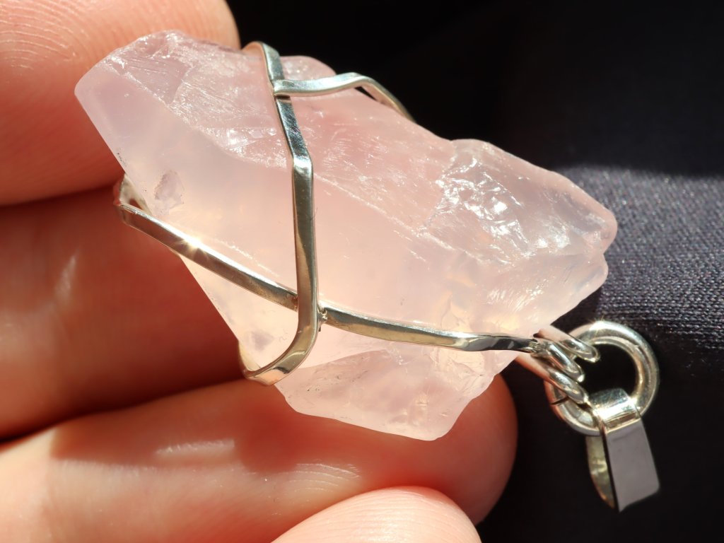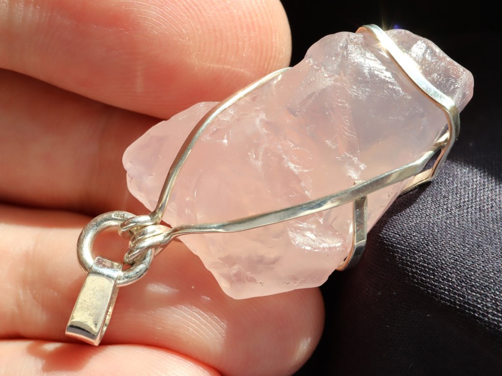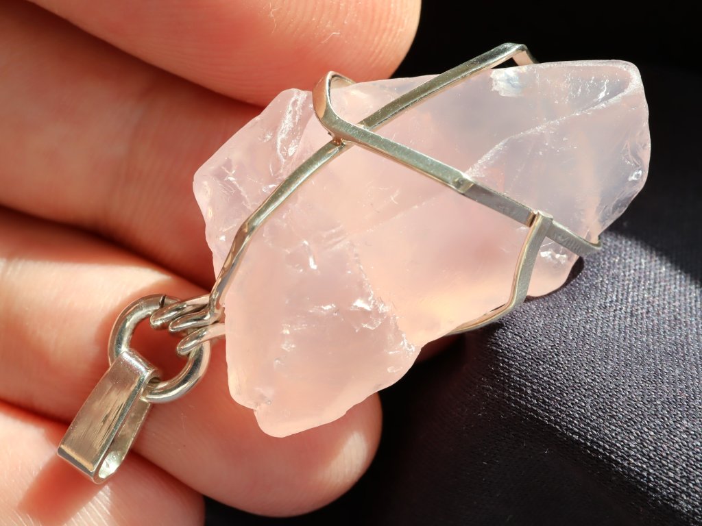Uchycení kamene ve stříbře je čistě ruční práce, nejedná se tedy o žádnou strojní velkovýrobu a každý přívěsek je originál. Růženín navíc není vrtaný ani žádným způsobem přilepený. Kamínek je pouze precizně opleten stříbrným drátkem, který pro něj vytvoří tzv. klícku, ve které bezpečně drží. Dražší přívěsky se navíc pyšní složitějším a propracovanějším řemeslným zpracováním či jsou decentně zdobené například kapičkami stříbra či jinými zajímavostmi. Mnohdy jsou v nich také zasazeny unikátní kameny.