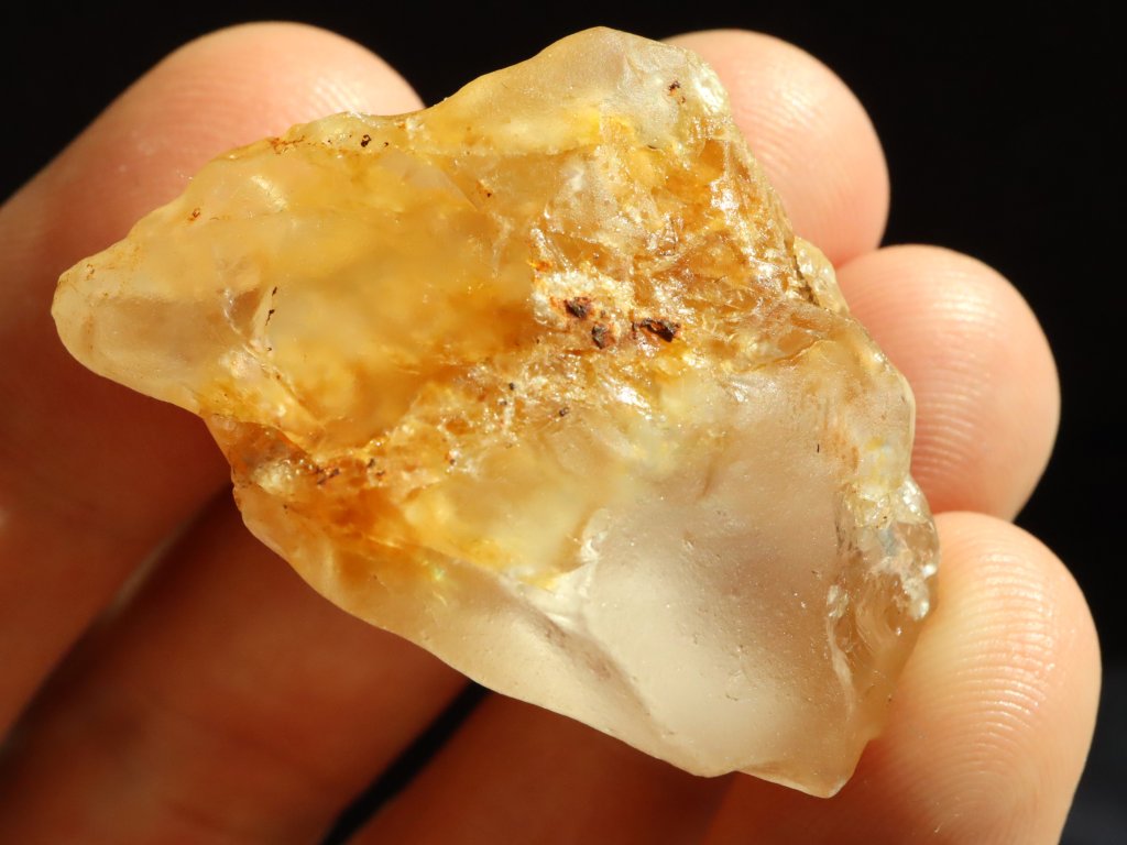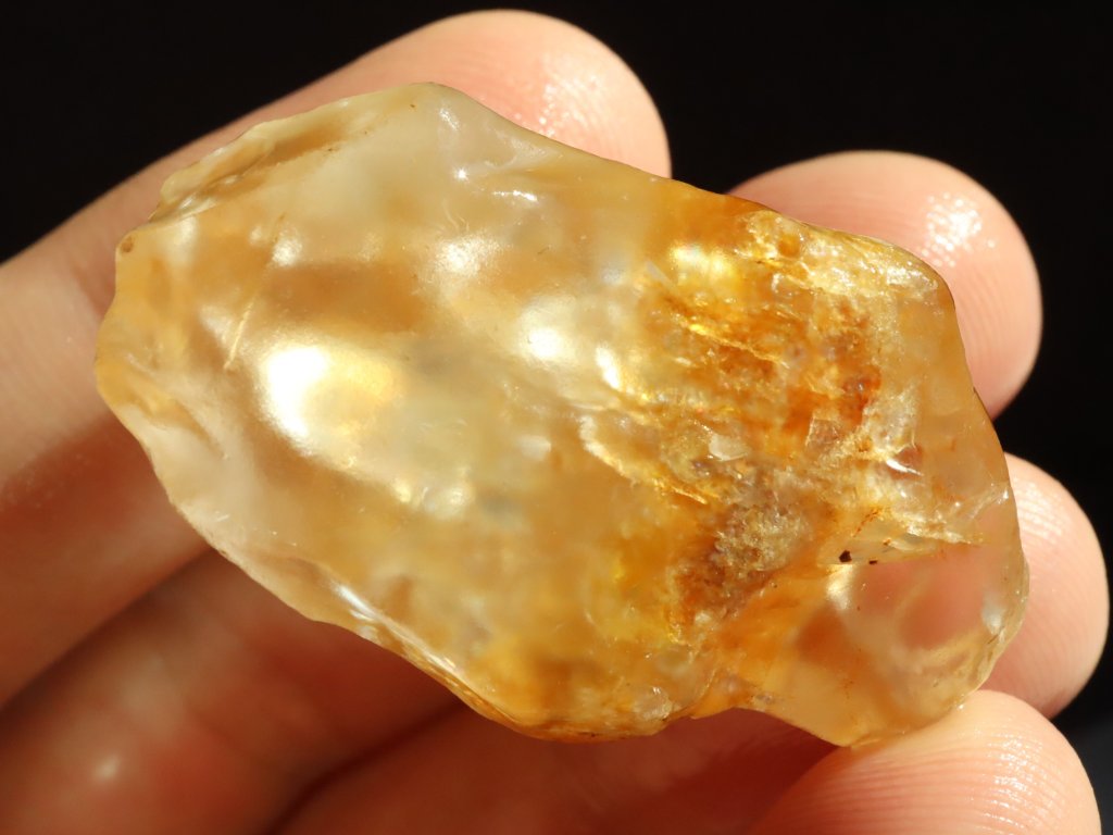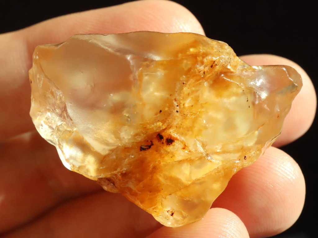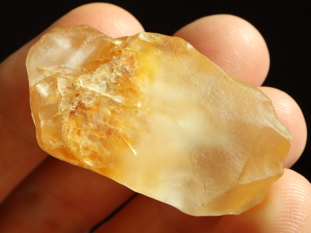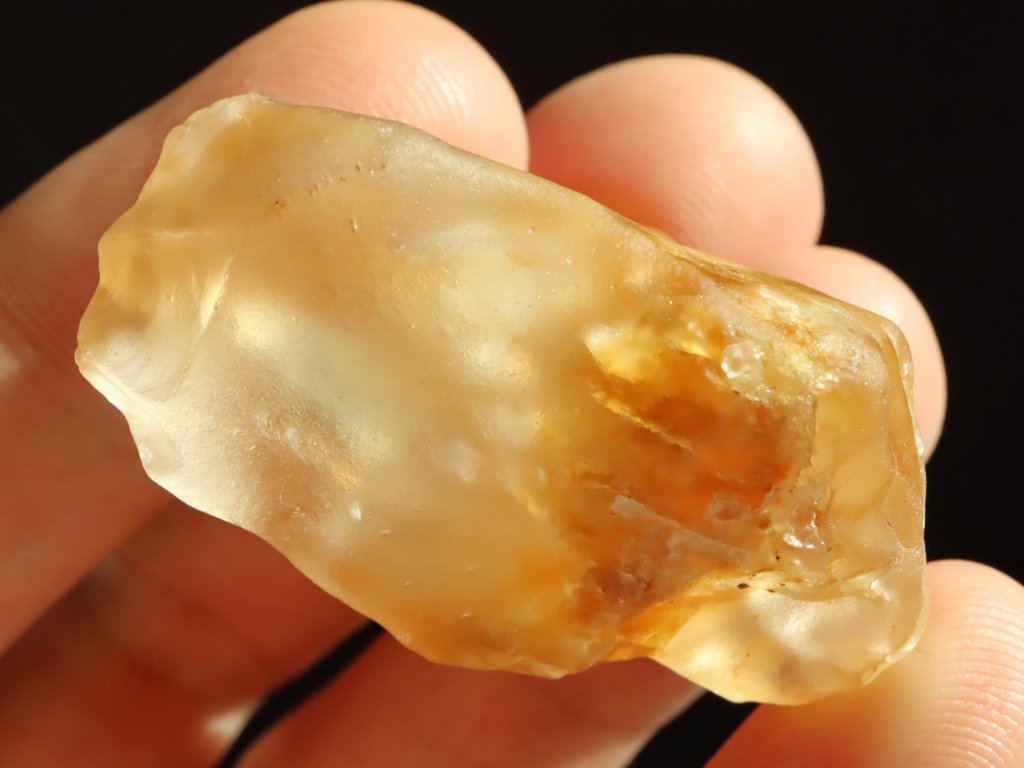Tento citrín je takřka celý matný, a převážně lehce až sametově ohlazený, tudíš i příjemný na dotek (Více o tzv. "sameťáčcích" si můžete přečíst níže v našem samostatném článku).