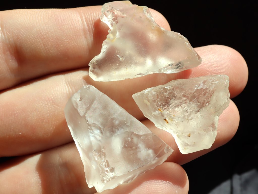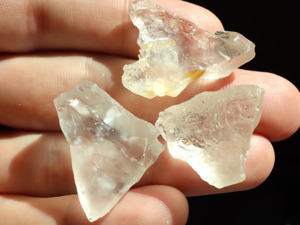 Jedná se o tři menší ale moc hezké křišťály, které se můžou pochlubit takřka ledově bílým odstínem s pouze velice nepatrnými žlutými tóny.