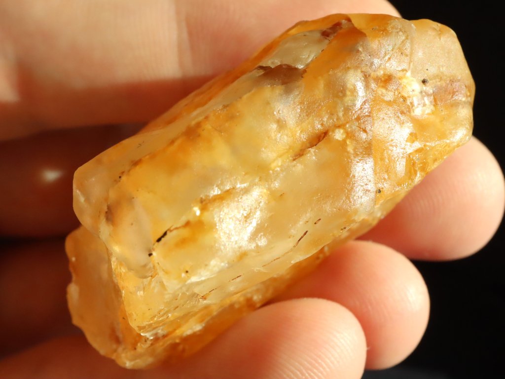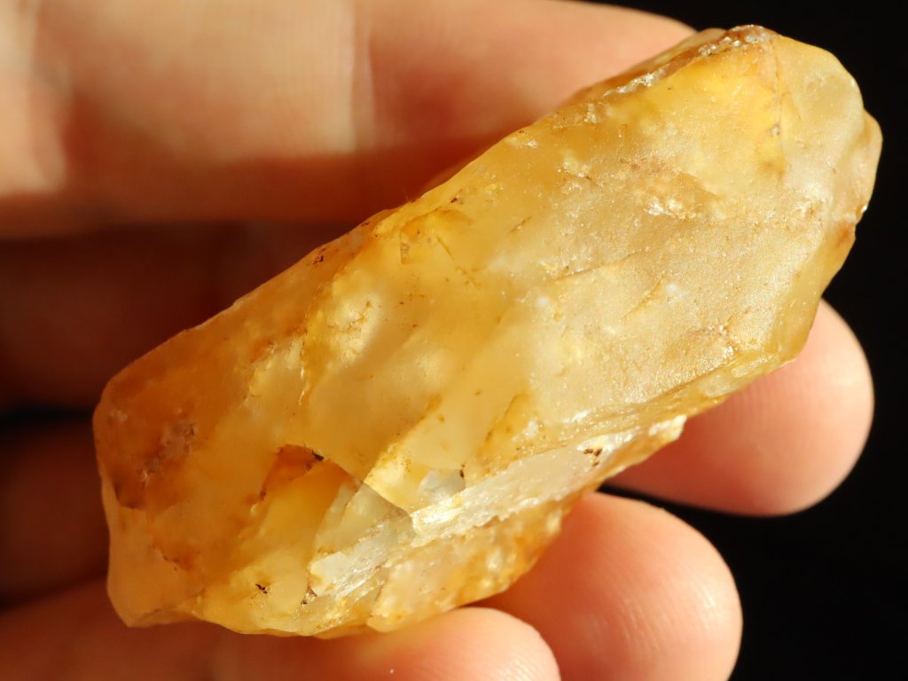 Tento citrín má převážně matný místy nepatrně ohlazený povrch.
