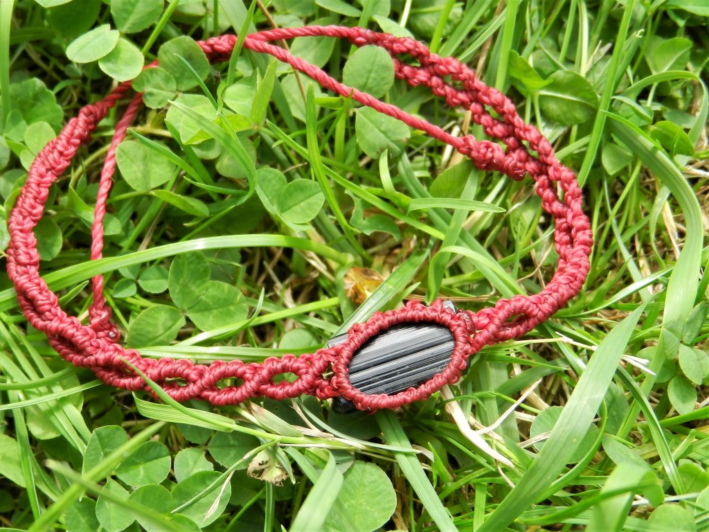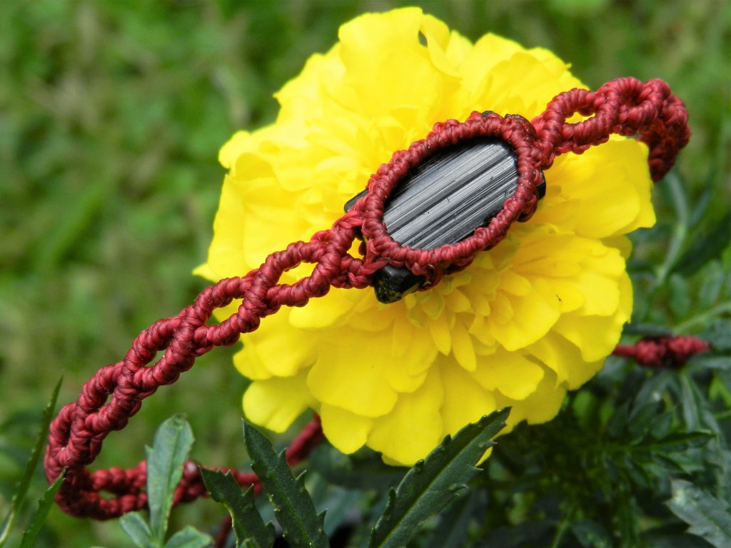 ► Náramek je vyrobený ručně technikou zvanou „Macramé” (někdy nazývanou drhání nebo sukování). Jde o oblíbenou metodu, která spočívá ve svazování provázků či nití do různých uzlíků. Lze tak vytvořit zajímavé krajky, spirály či jiné požadované tvary.