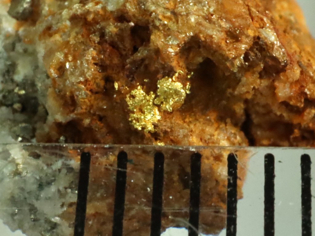 Na jednom snímku je vzorek i s "milimetrovou stupnicí", kde je uváděná velikost zlatinky / plíšku dobře patrná.