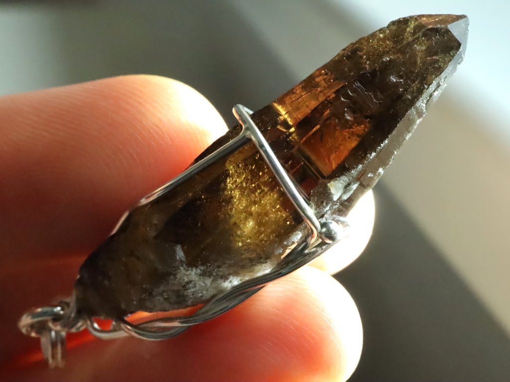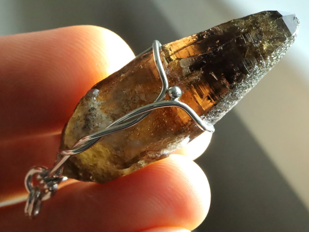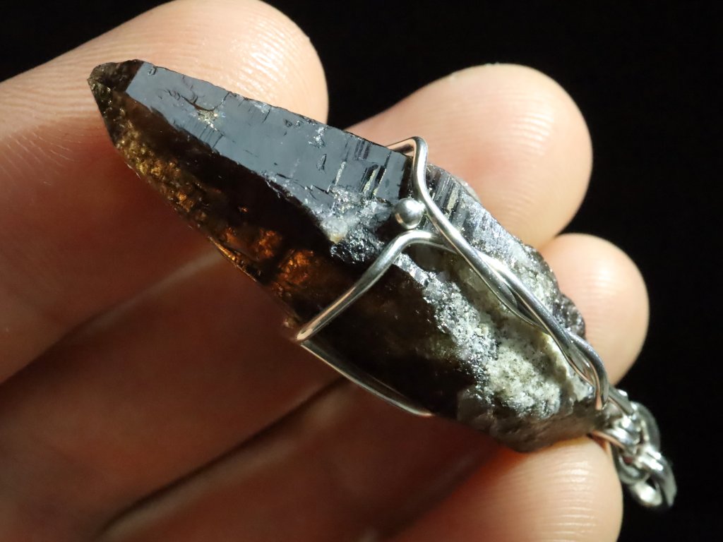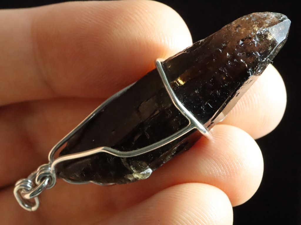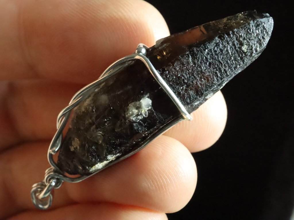 Pokud máte rádi v přívěscích trošku vetší kamínky, tento 4,5 centimetru dlouhý krystalek morionu bude pro vás tím pravým.
