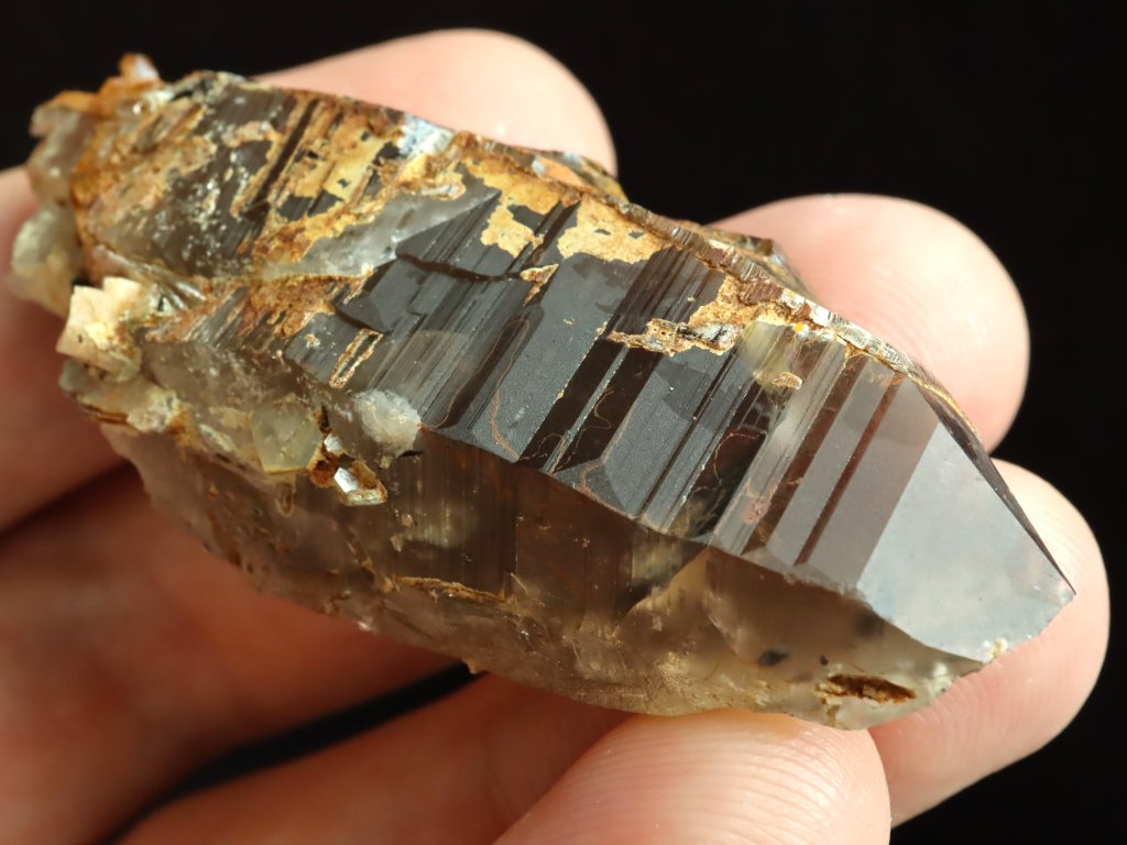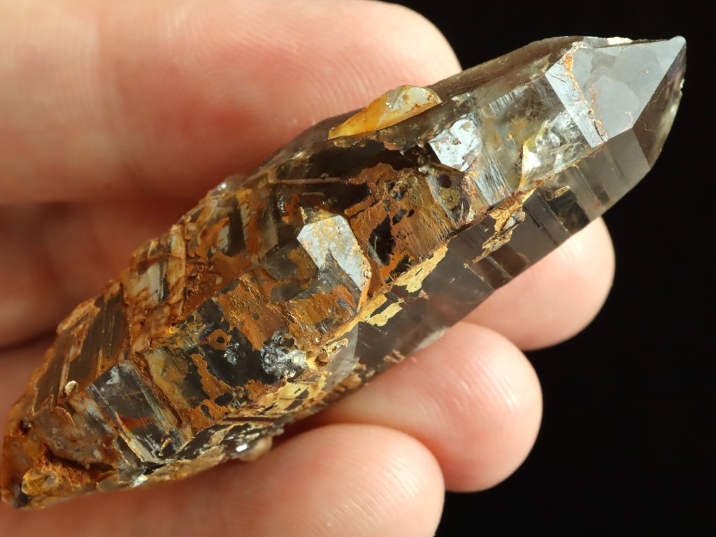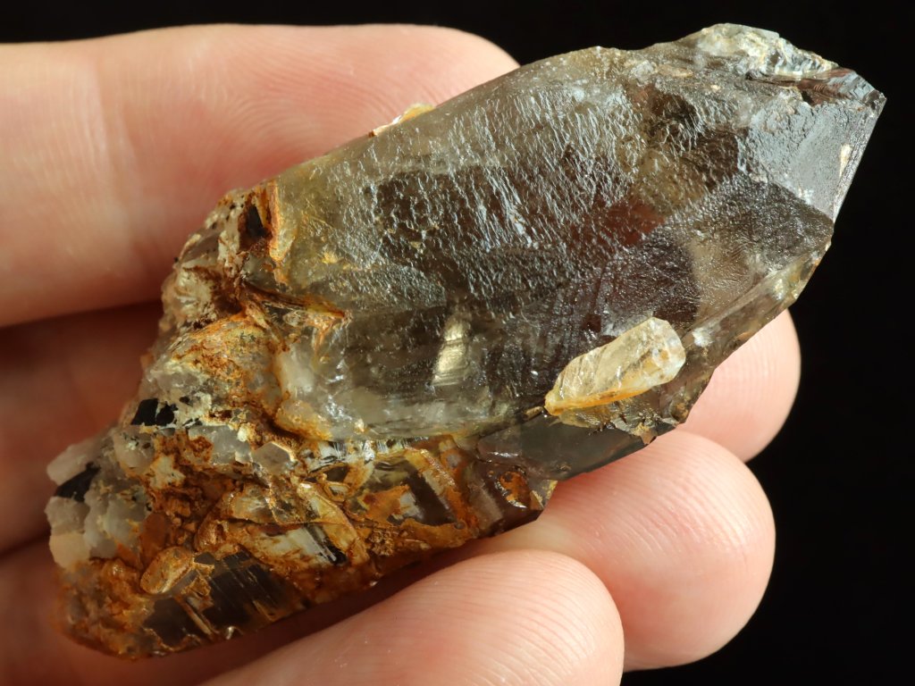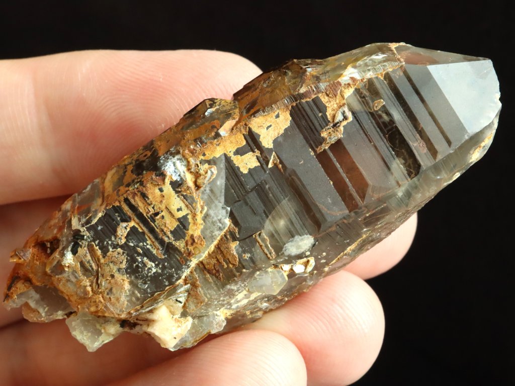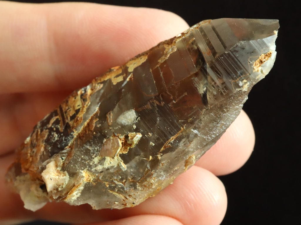 Průsvitný krystal záhnědy / morionu s náznakem dohojení