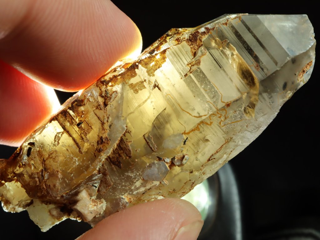 Sluníčkem či baterkou je vzorek krásně průsvitný - viz. poslední snímek, do vnitřního světa lze však nahlédnout jen velmi omezeně.