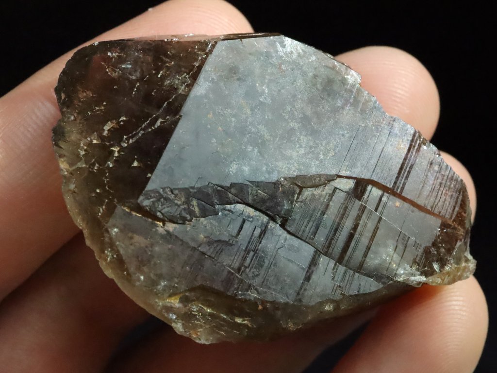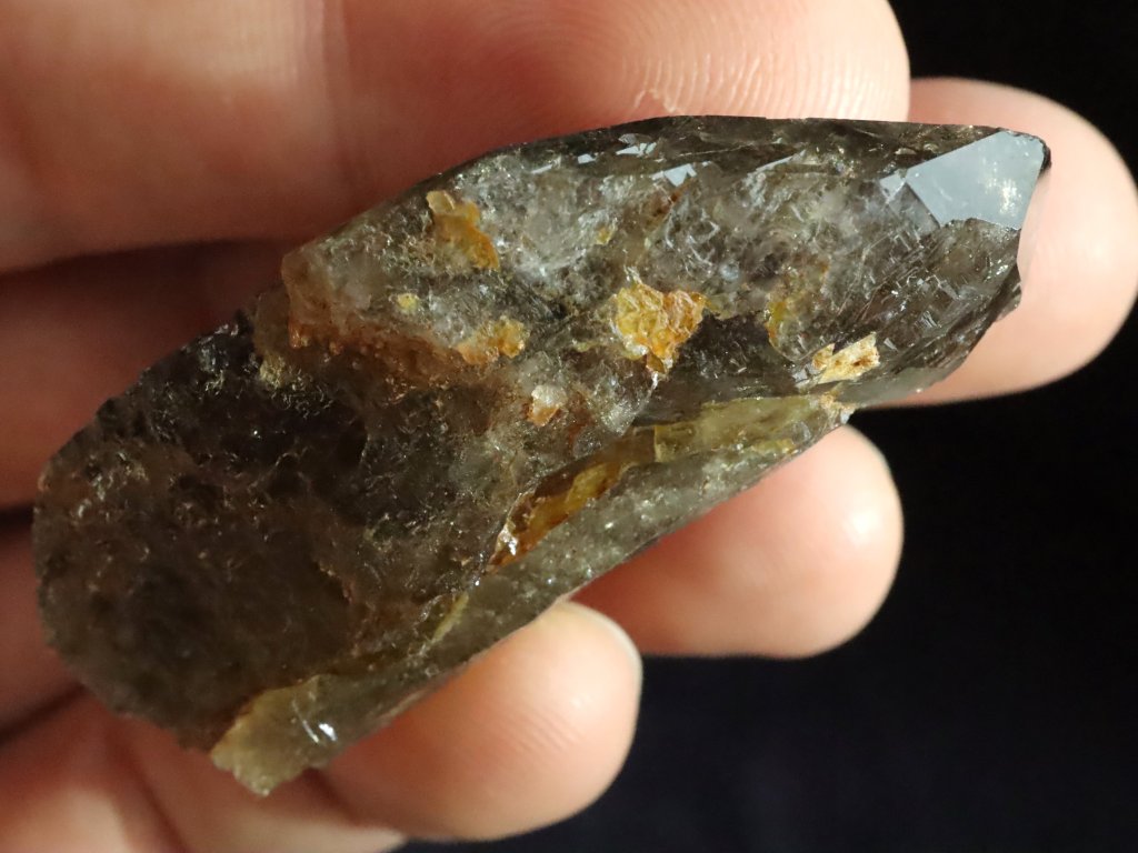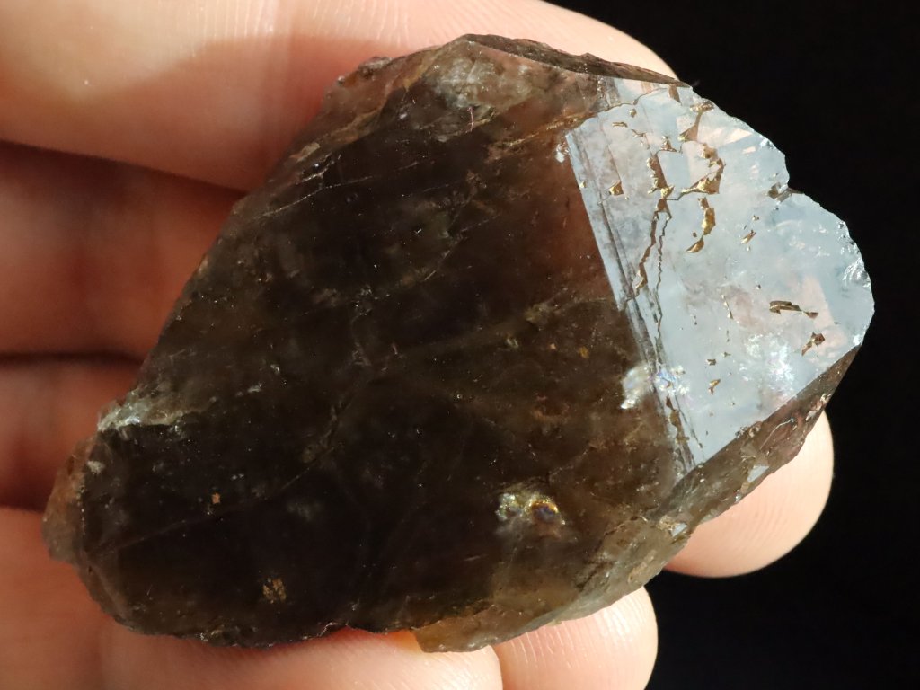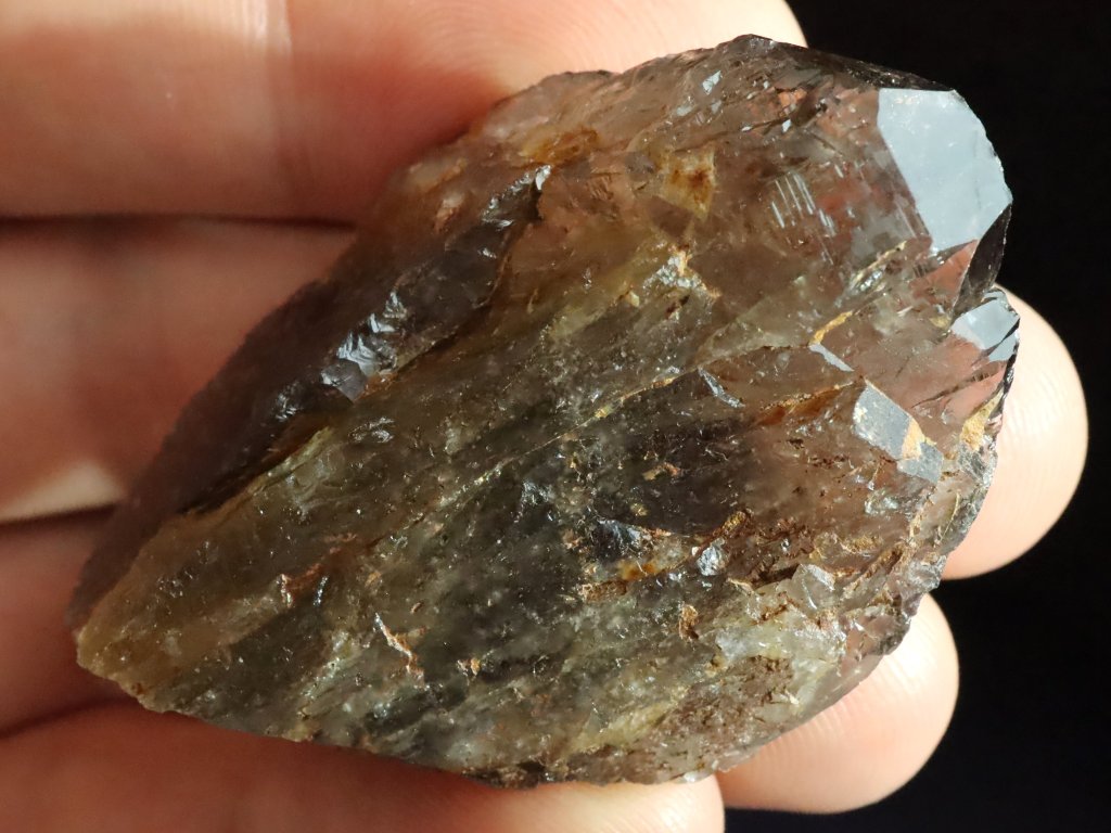 Přírodní temná až černá záhněda označovaná jako morion, nalezená na lokalitě Bohdalec (Vysočina).