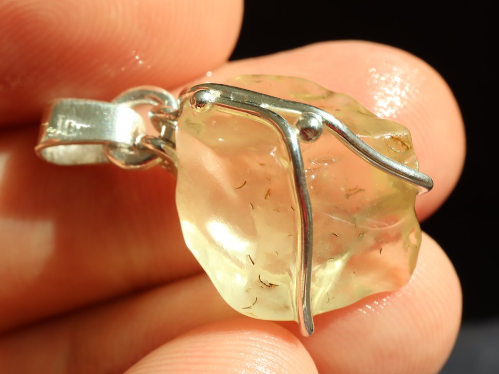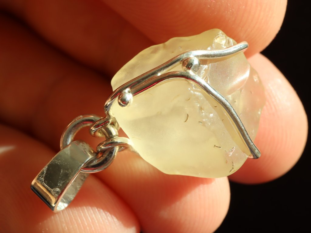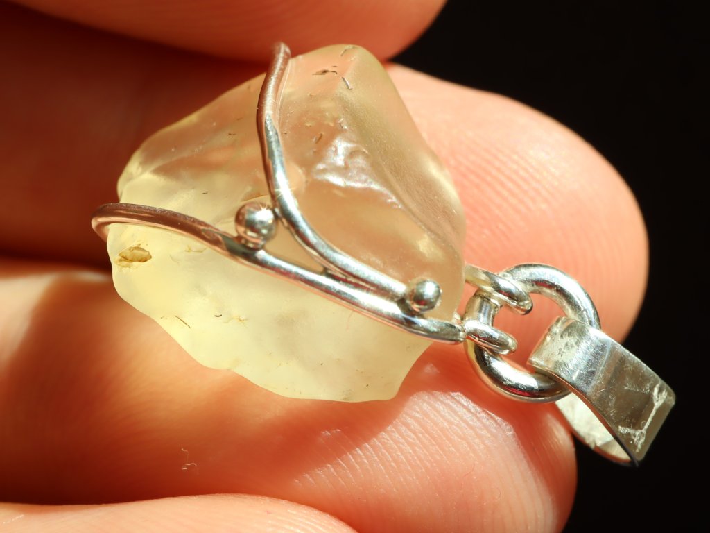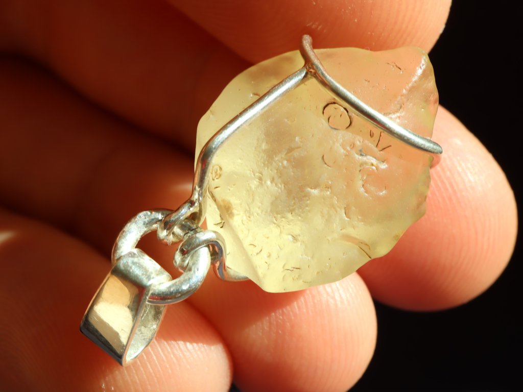 Půvabně žluté libyjské pouštní sklo ve šperku / stříbrném přívěsku