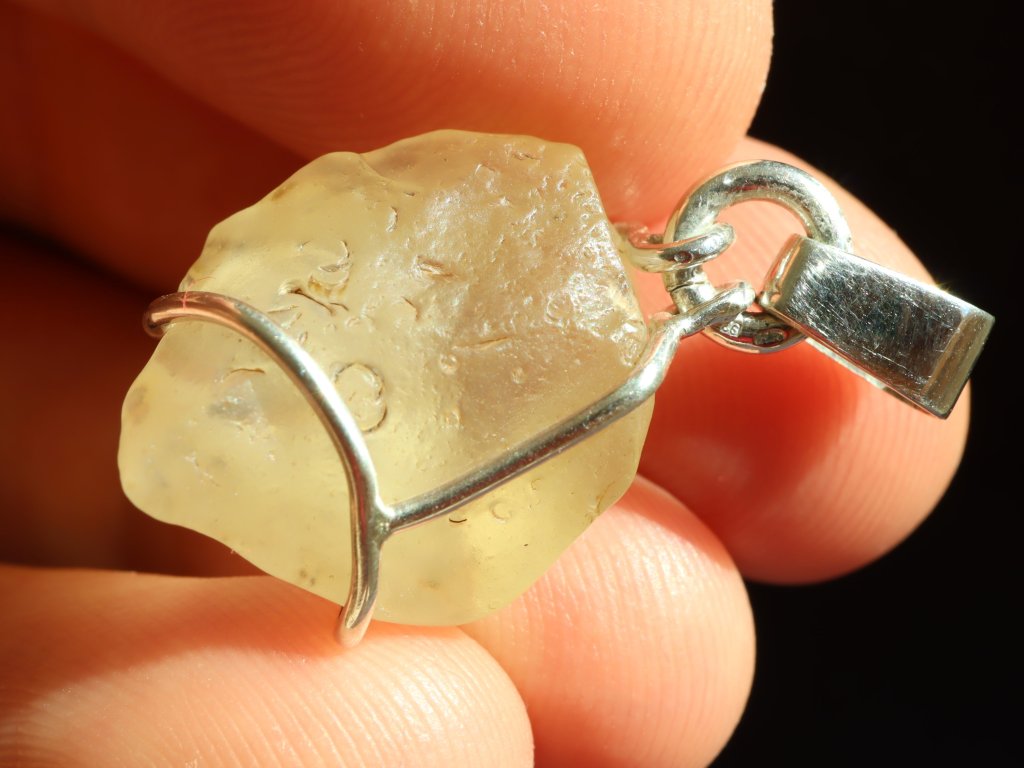 Libyjské sklo je nápaditě a precizně zasazeno ve stříbře (925/1000). Jedná se o jedinečný šperk s čistě přírodním a surovým kamenem (tektitem), který není žádným způsobem opracovaný a je ponechaný v původním stavu, ve kterém byl nalezen.