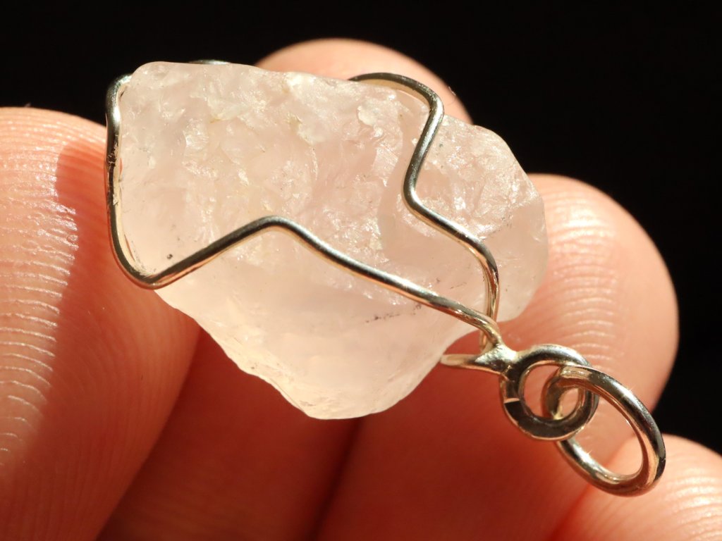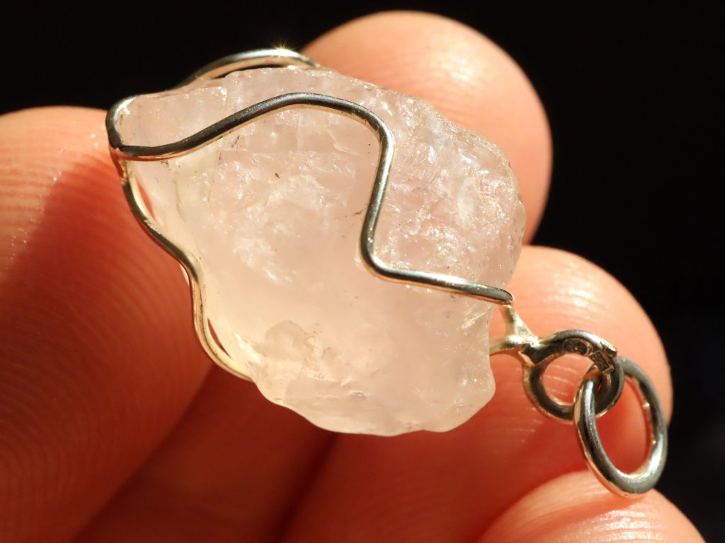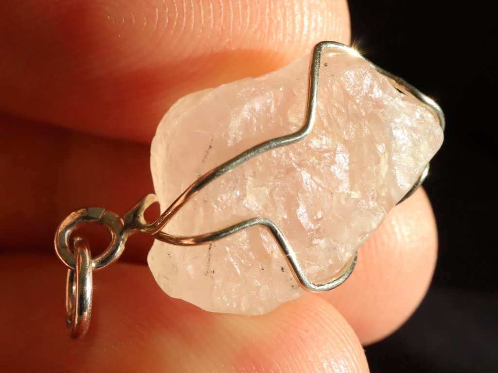 V přívěsku se můžete kochat surovým růženínem, který má na sluníčku půvabný jemně růžový odstín.