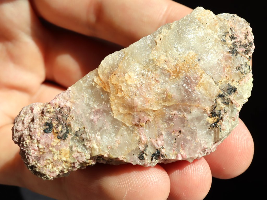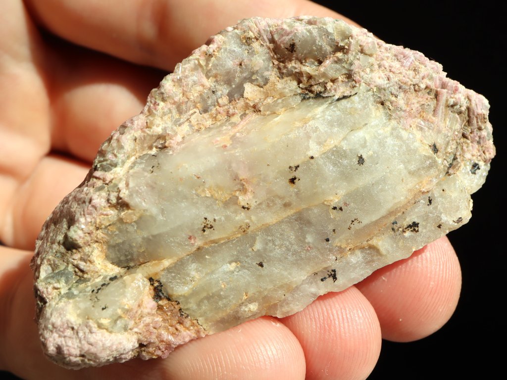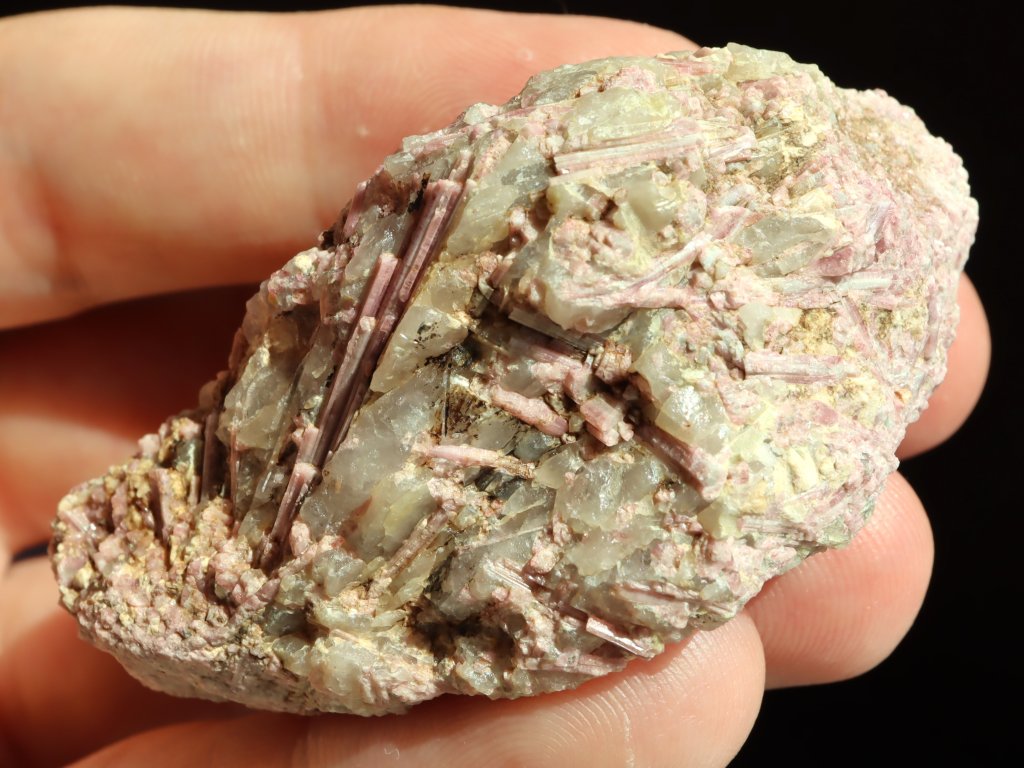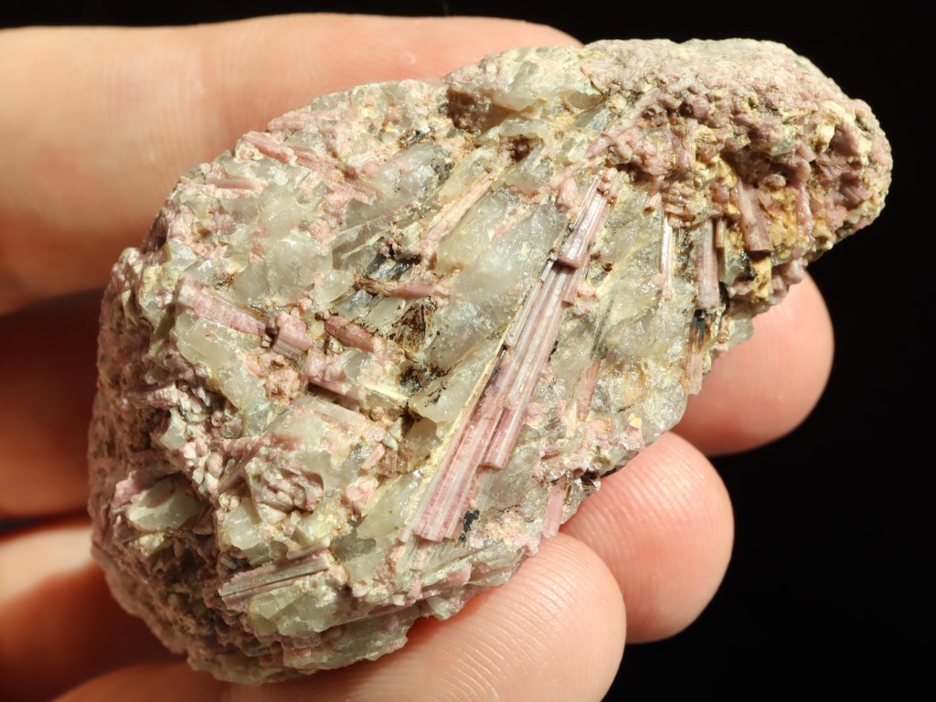 Krásný vzorek růžového turmalínu rubelitu pro začínající sběratele, z významného šutráckého naleziště Rožná (Vysočina).