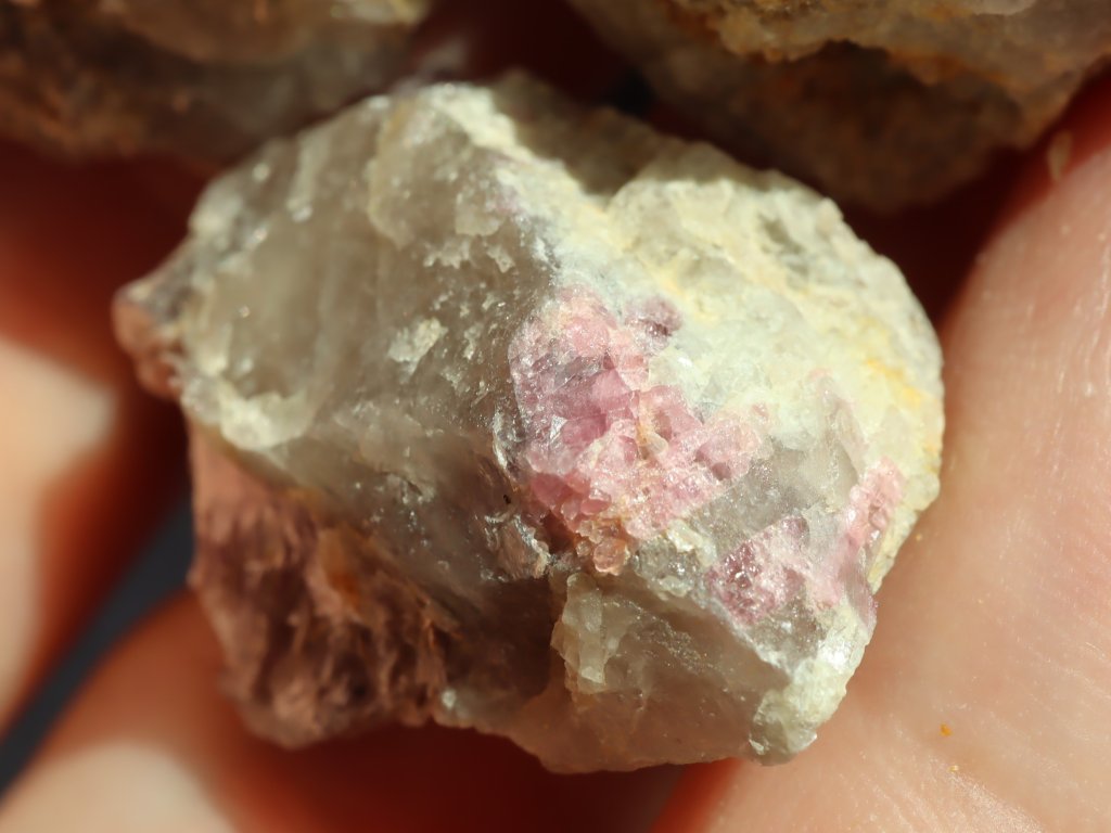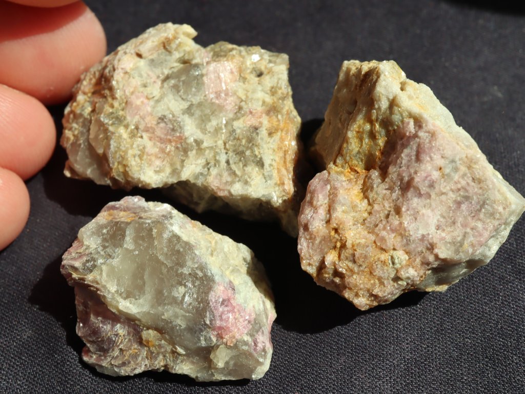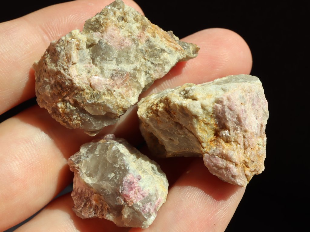 Hezká sestava surových českých rubelitů / růžových turmalínů z lokality Rožná - Vysočina.