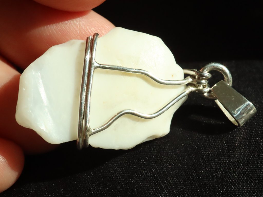 Sněhově bílý opál z jižních Čech - stříbrný přívěsek