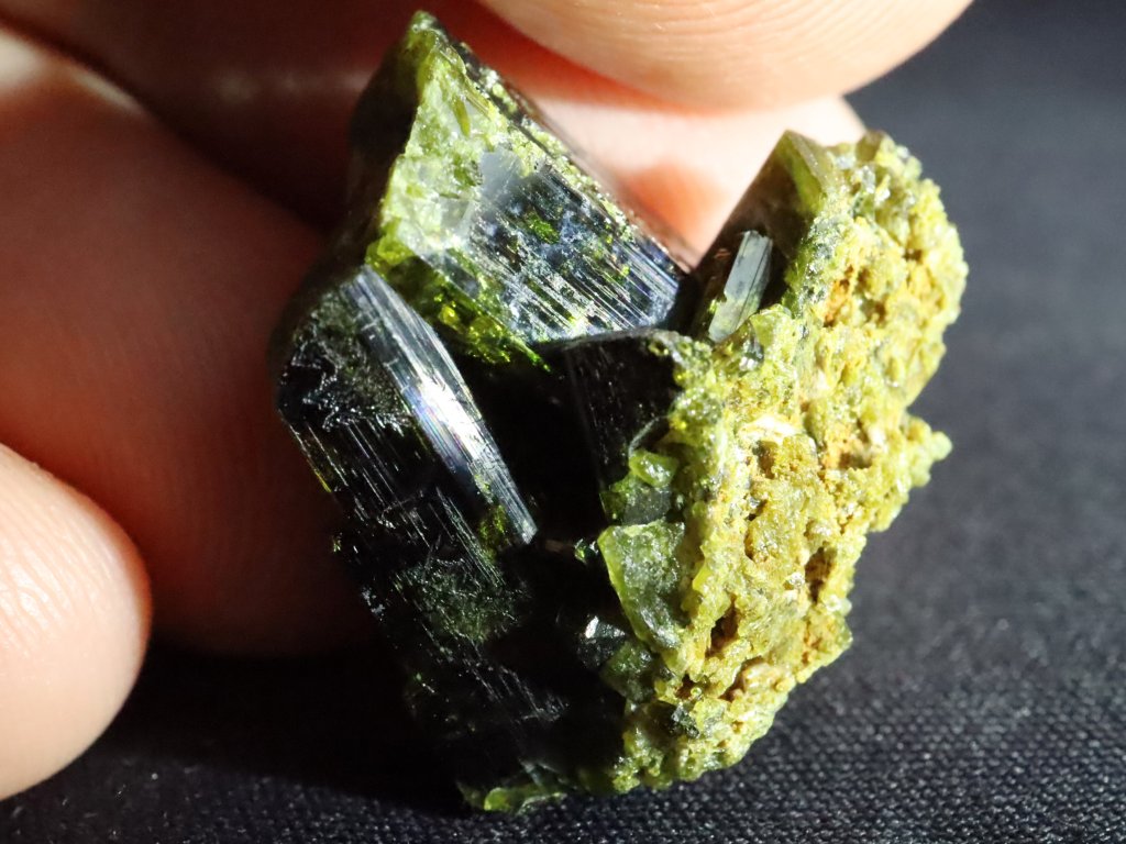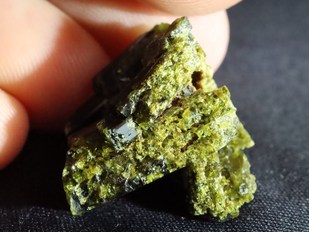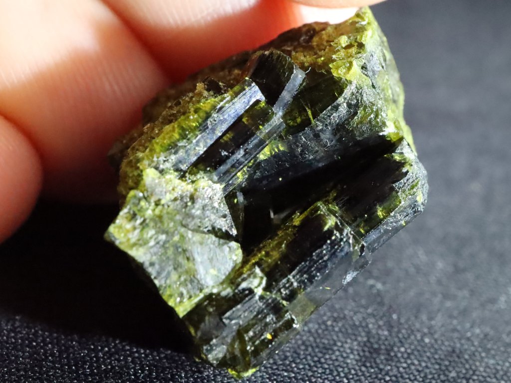 Epidoty na běžném denním světle či někde ve stínu v potemnělé místnosti příliš nevyniknou, protože jejich barva je zde velmi tmavě až temně zelená.