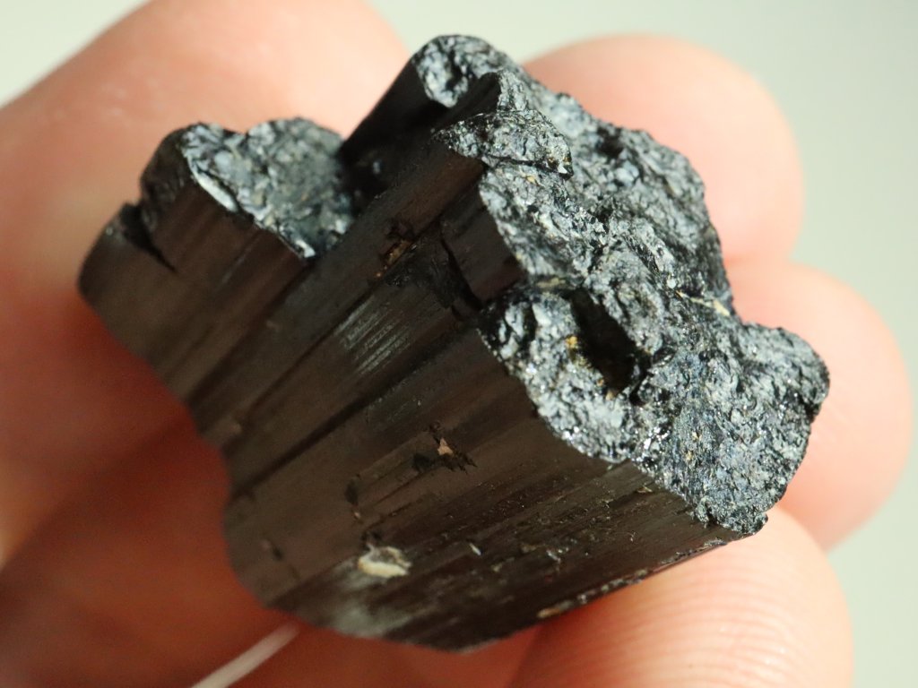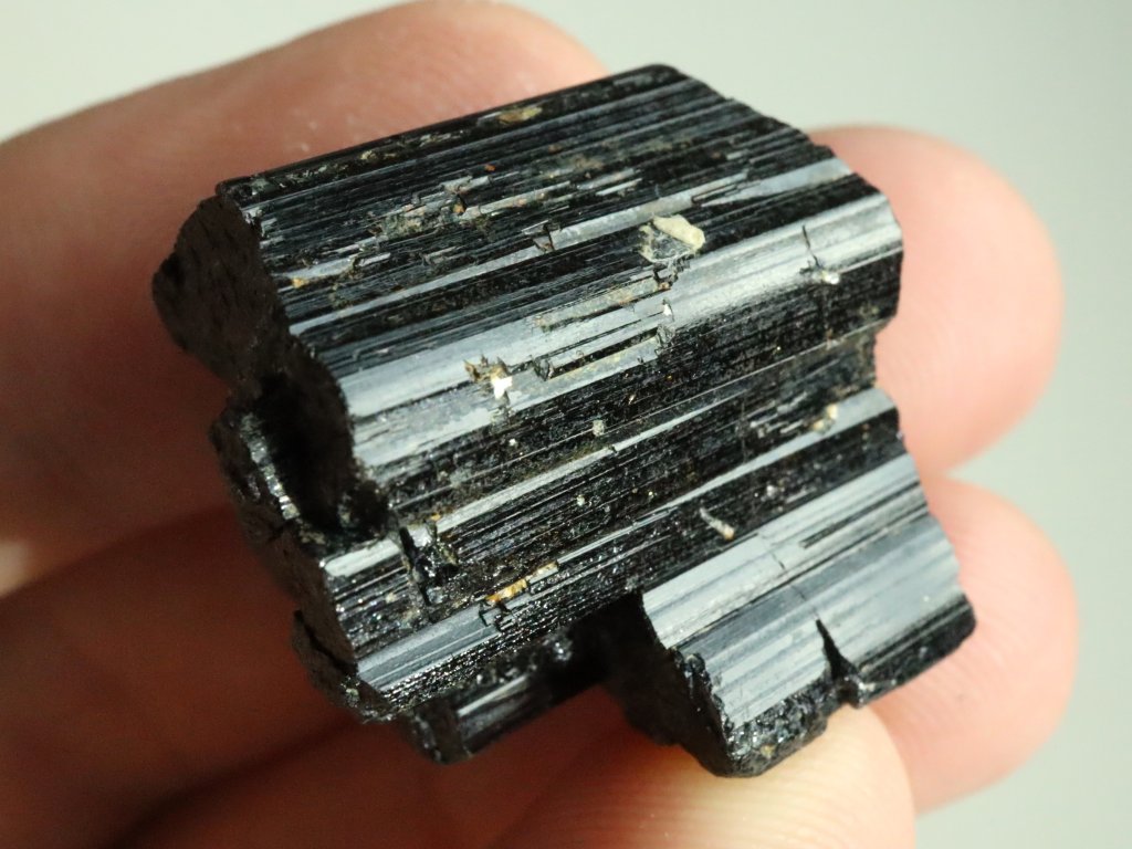 Atraktivní kousek přírodního černého turmalínu skorylu nalezený na věhlasné šutrácké lokalitě Pikárec v oblasti Vysočiny.