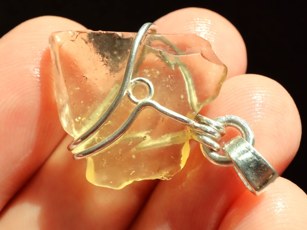 Žluté až zlatavé libyjské pouštní sklo - stříbrný přívěsek
