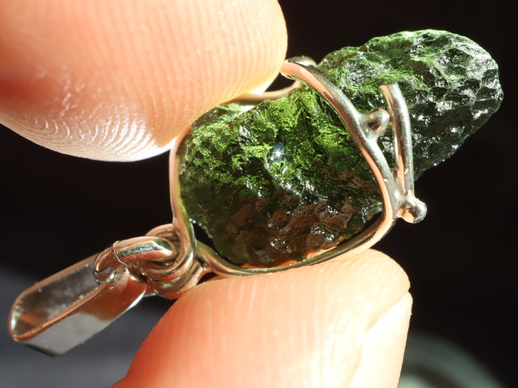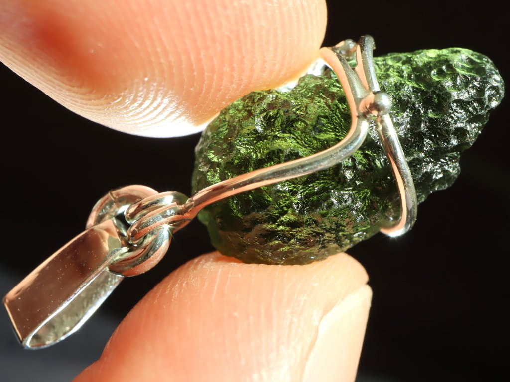 Uchycení kamene ve stříbře je čistě ruční práce, nejedná se tedy o žádnou strojní velkovýrobu a každý přívěsek je originál. Vltavín navíc není vrtaný ani žádným způsobem přilepený. Kamínek je pouze precizně opleten stříbrným drátkem, který pro něj vytvoří tzv. klícku, ve které bezpečně drží. Dražší přívěsky se navíc pyšní složitějším a propracovanějším řemeslným zpracováním či jsou decentně zdobené například kapičkami stříbra či jinými zajímavostmi. Mnohdy jsou v nich také zasazeny unikátní kameny.