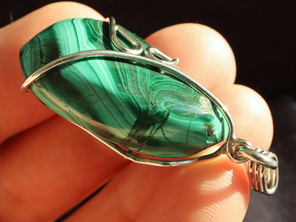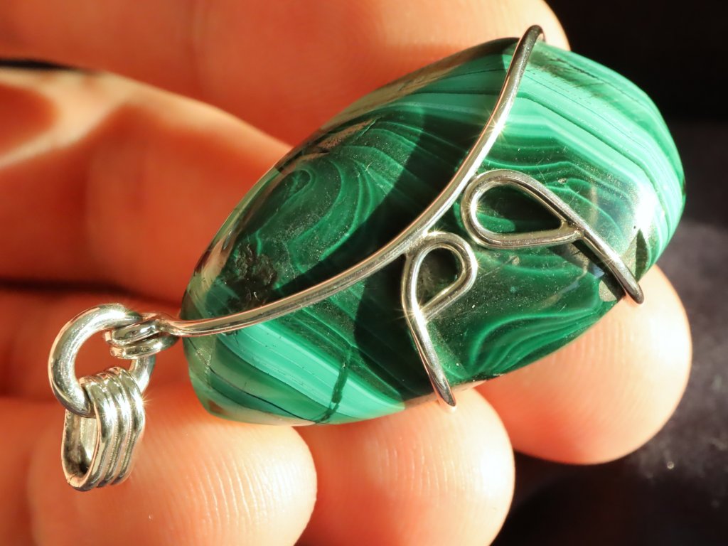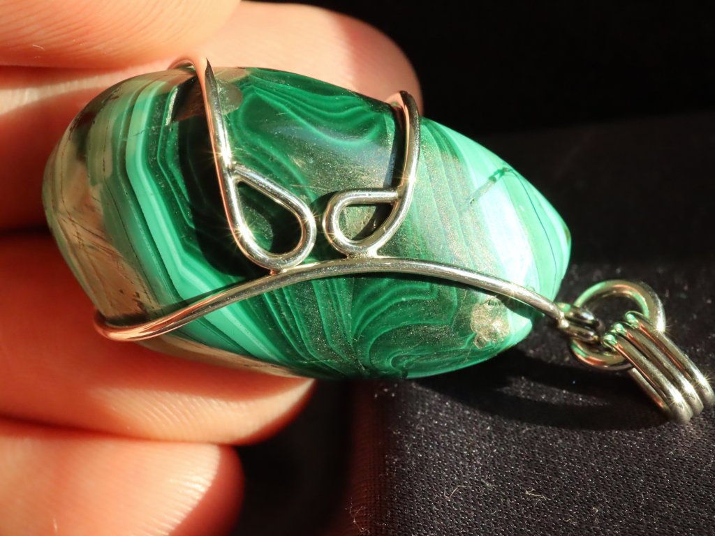 Uchycení kamene ve stříbře je čistě ruční práce, nejedná se tedy o žádnou strojní velkovýrobu a každý přívěsek je originál. Malachit navíc není vrtaný ani žádným způsobem přilepený. Kamínek je pouze precizně opleten stříbrným drátkem, který pro něj vytvoří tzv. klícku, ve které bezpečně drží. Dražší přívěsky se navíc pyšní složitějším a propracovanějším řemeslným zpracováním či jsou decentně zdobené například kapičkami stříbra či jinými zajímavostmi. Mnohdy jsou v nich také zasazeny unikátní kameny.
