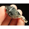 Precizně řemeslně a umělecky zpracovaný stříbrný přívěsek s přírodní temnou až černou záhnědou tzv. morionem ze slavného kamínkářského naleziště Kněževes (Vysočina).