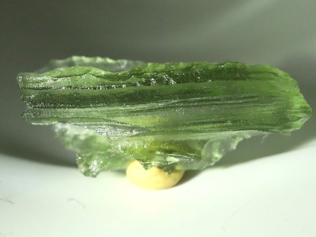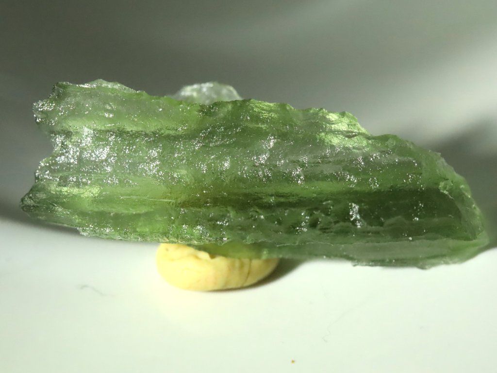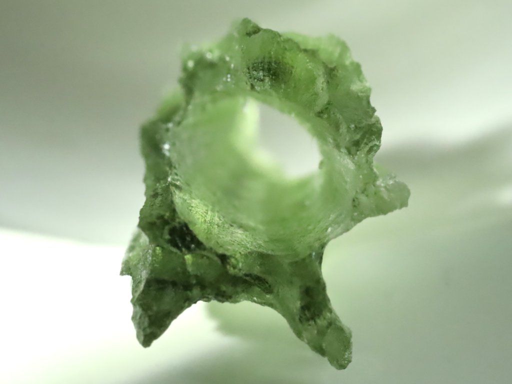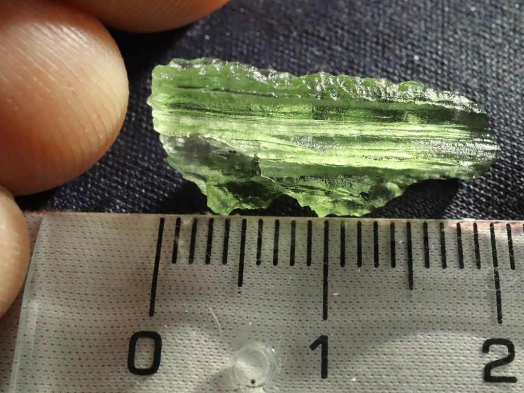 Přírodní vltavín s váhou 0,85 gramu, pocházející z oblasti jižních Čech.