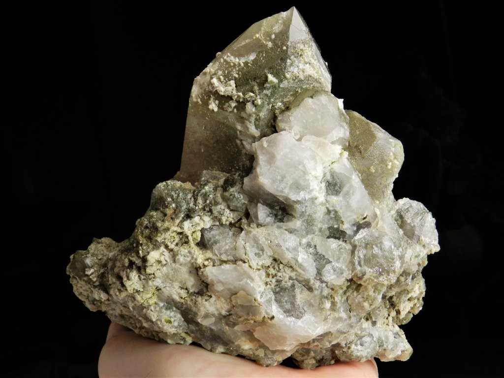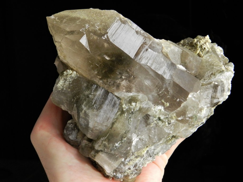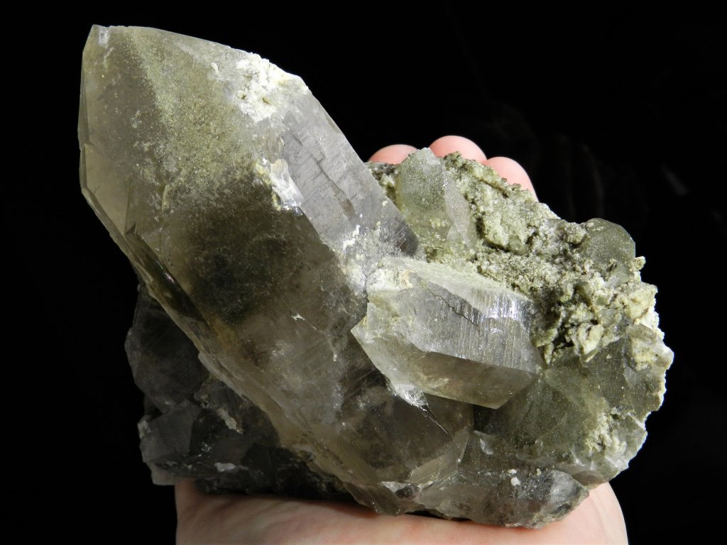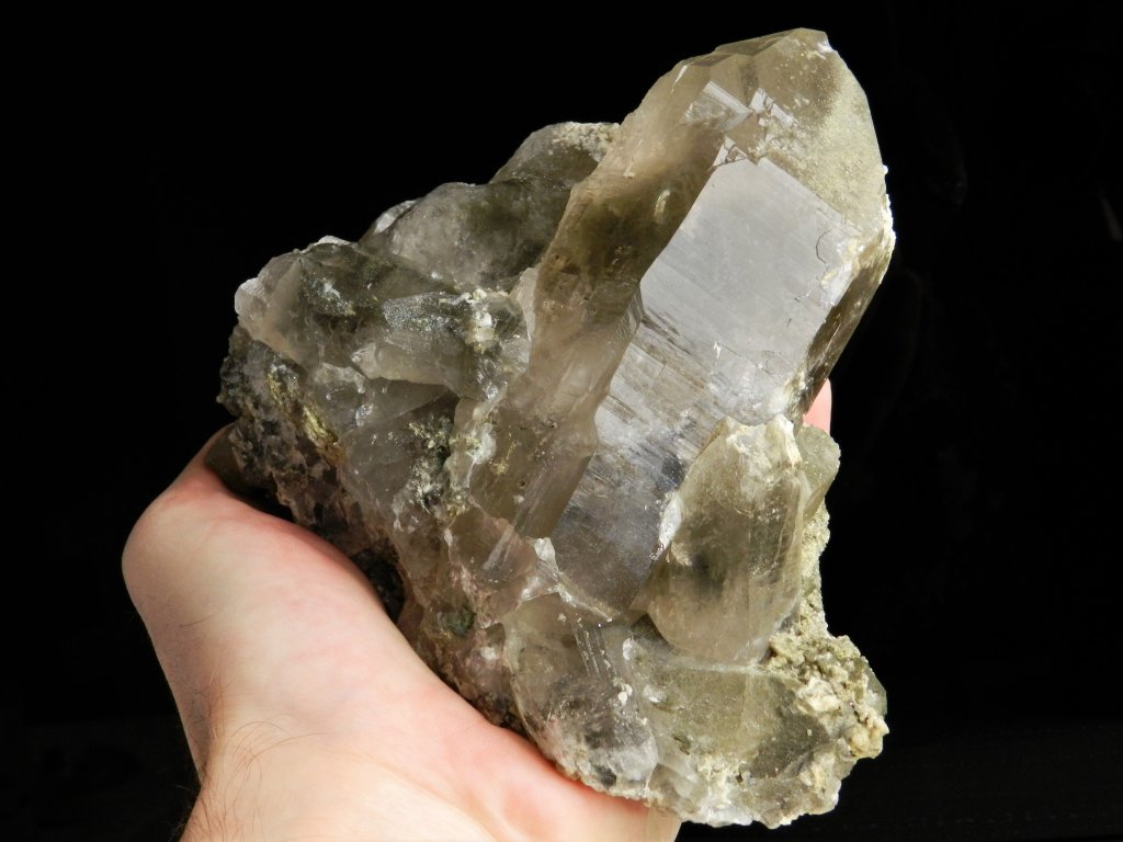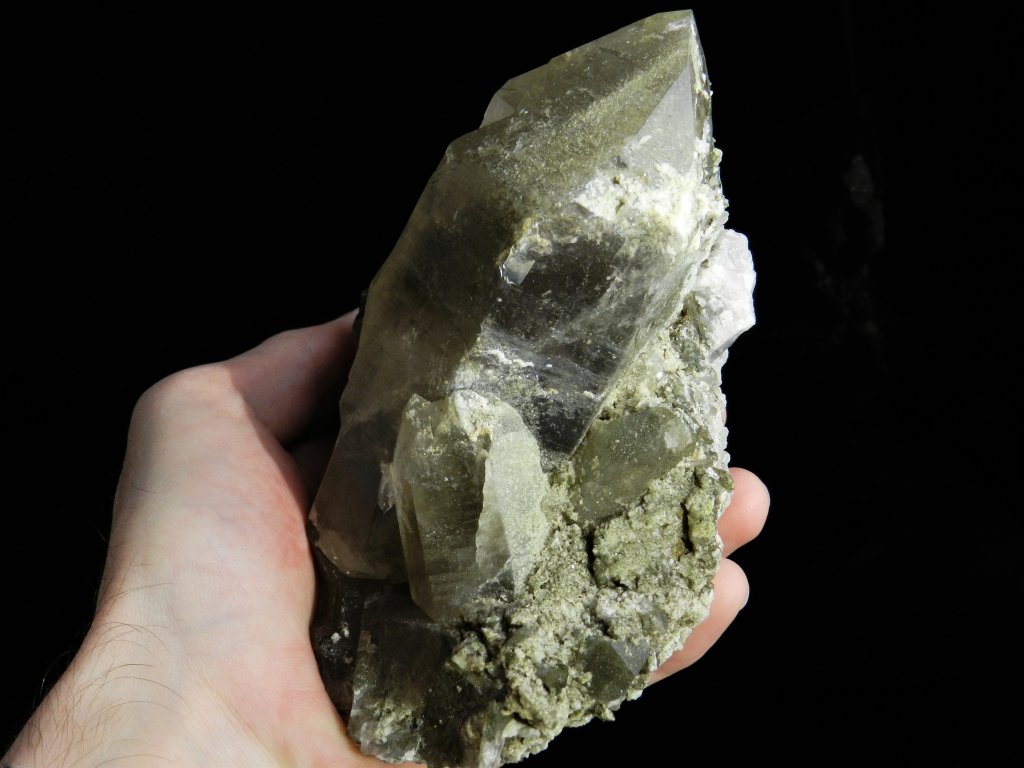 Jako první každého jistě zaujme největší tzv. dominantní krystal, který se pyšní uctihodnou délkou 12 centimetrů a krásným buclatým tvarem (průměr krystalu činí přes 5 centimetrů).