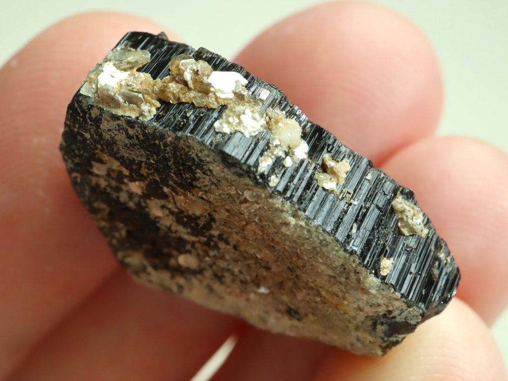 Nevšední úzký špalík skorylu pocházející z vyhlášené mineralogické oblasti Pikárec (Vysočina).