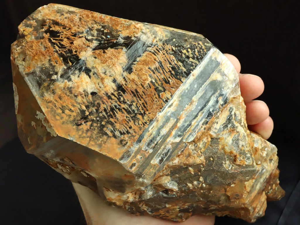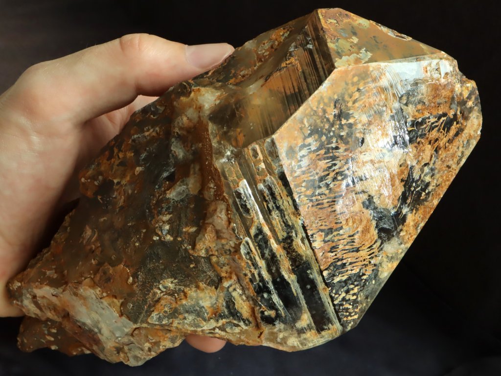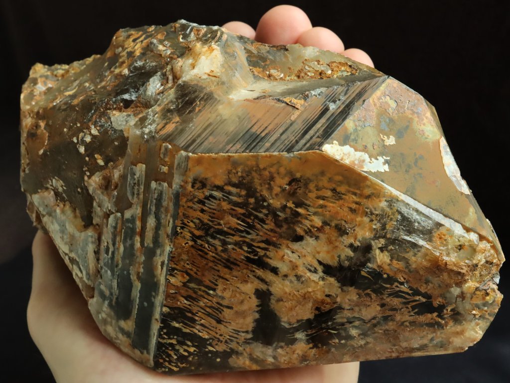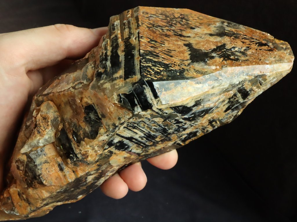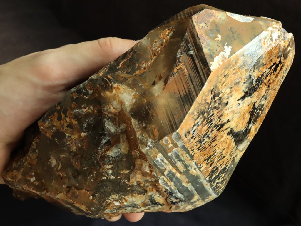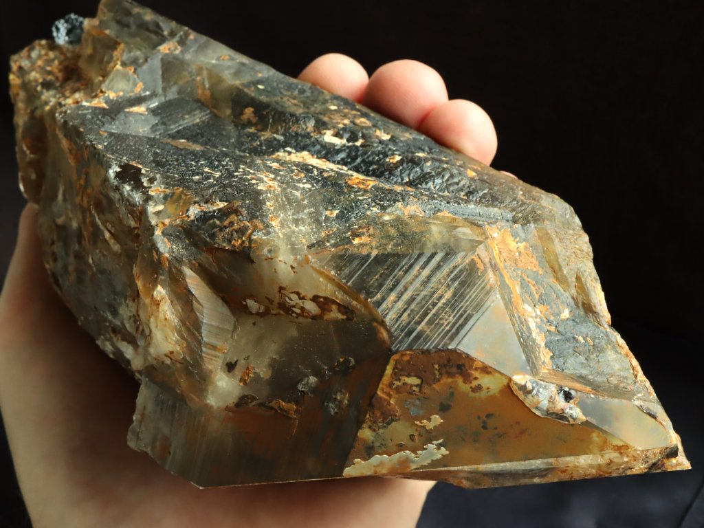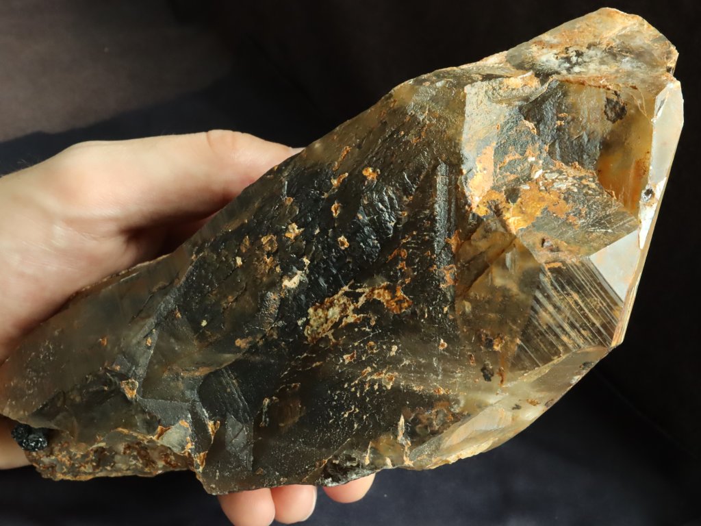 Veliký krystal morionu s buclatou špicí a povlakem limonitu/ křemene-1,5 Kg