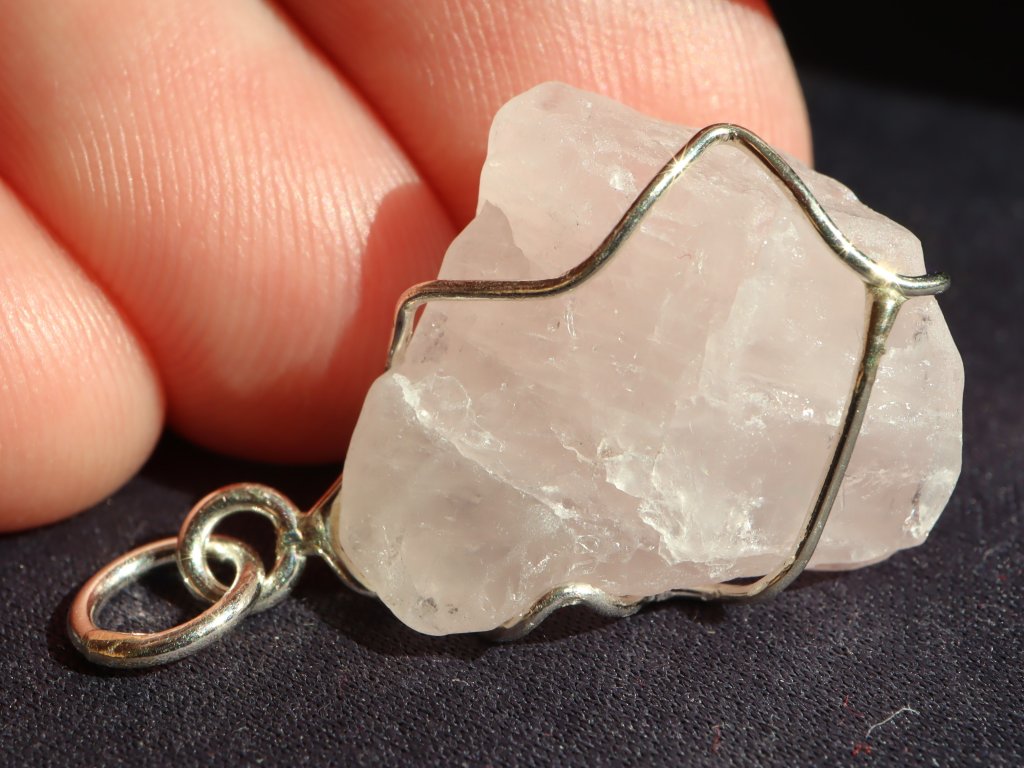 Tento přívěsek je osazený čistě přírodním / surovým růženínem, který má velmi decentní jemně růžový nádech. Toto světle růžové zbarvení samozřejmě nejlépe vynikne a zazáří na sluníčku.