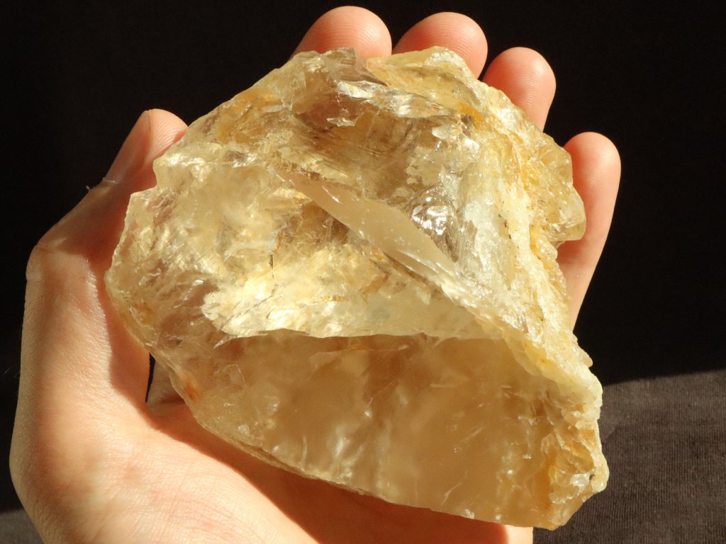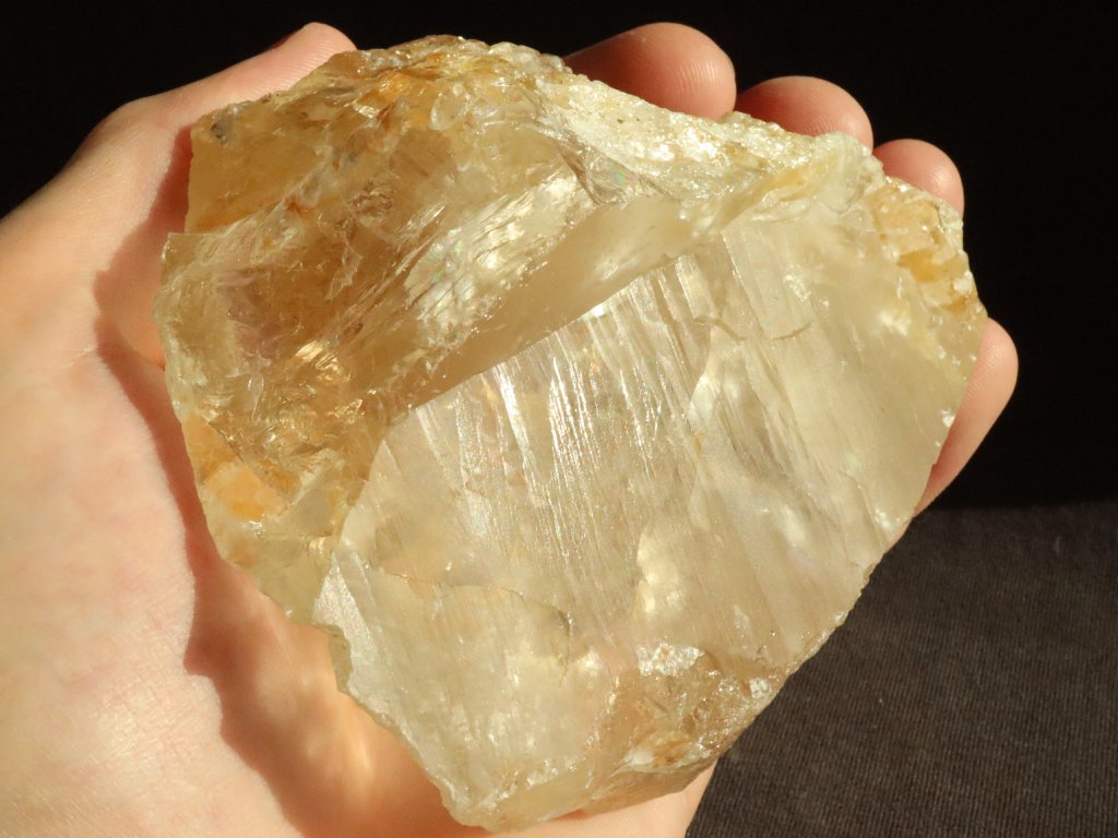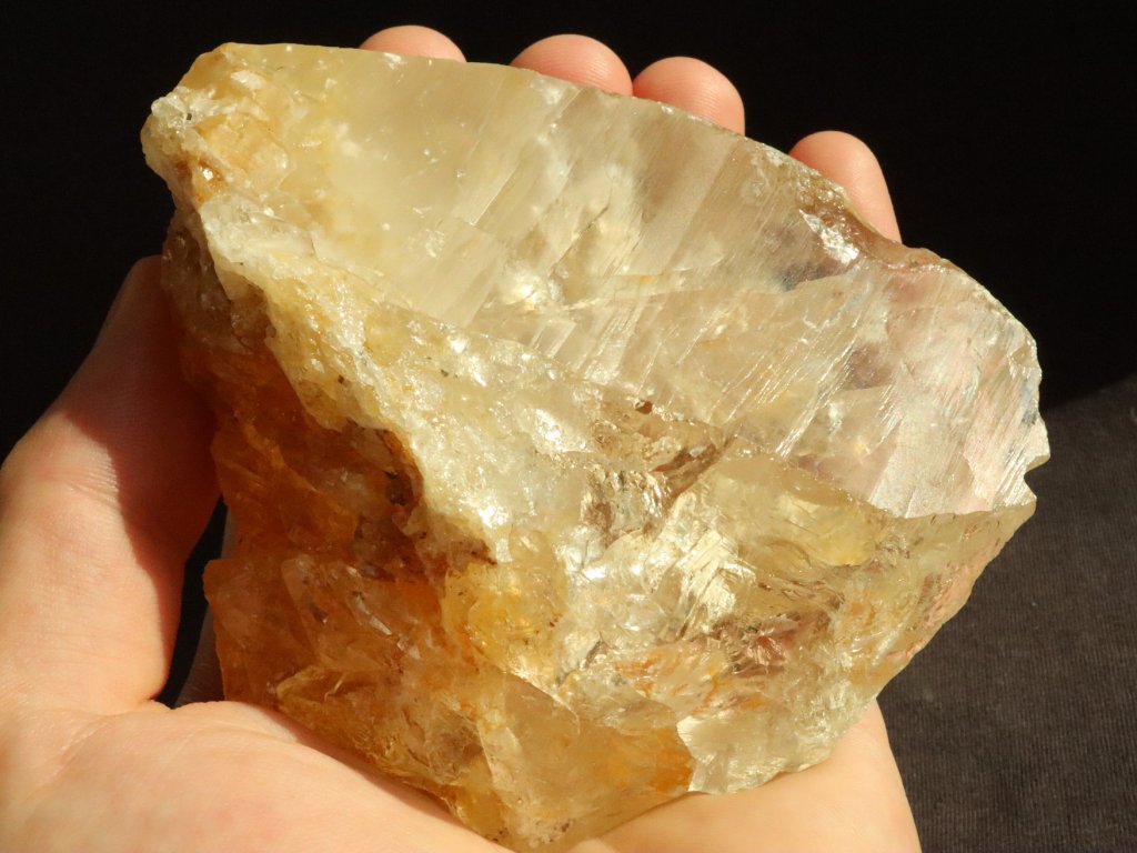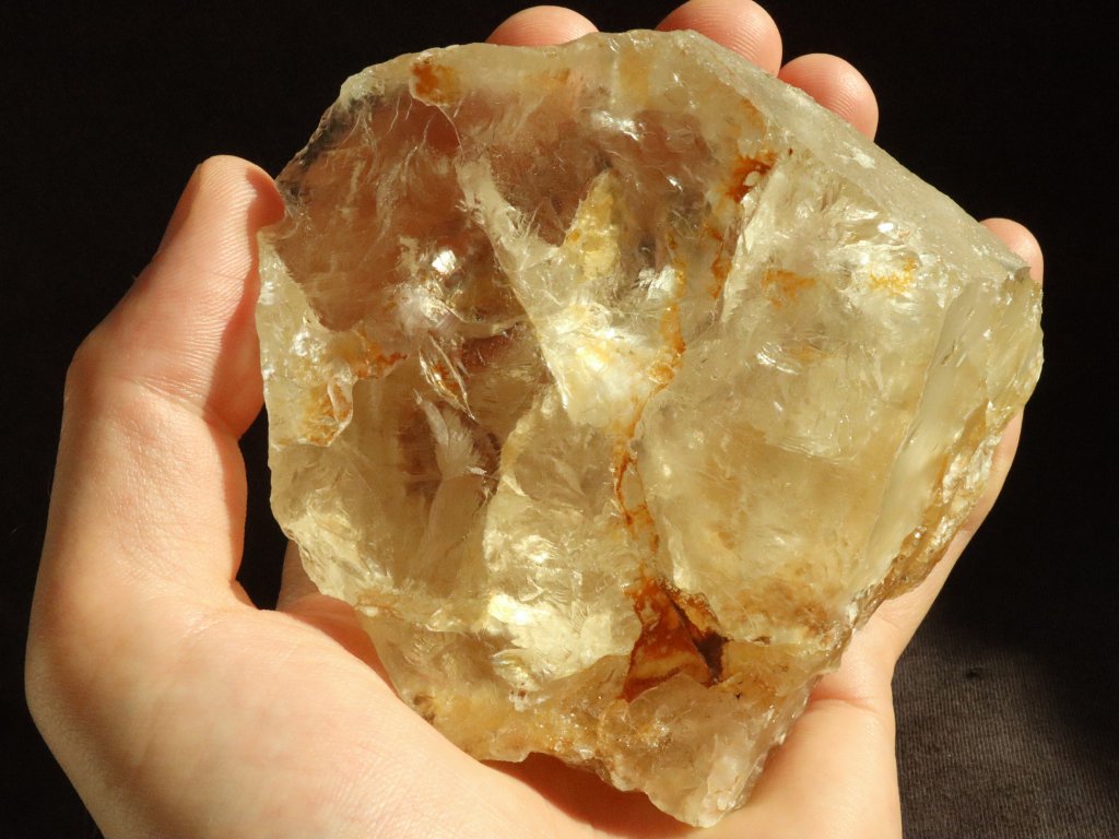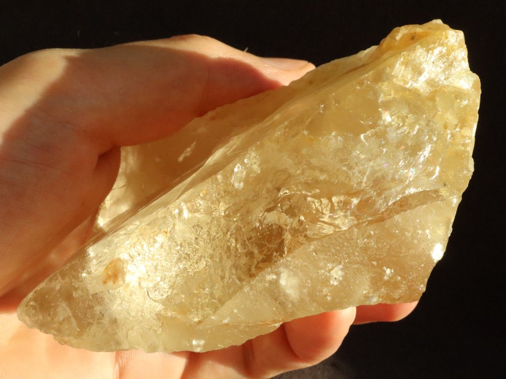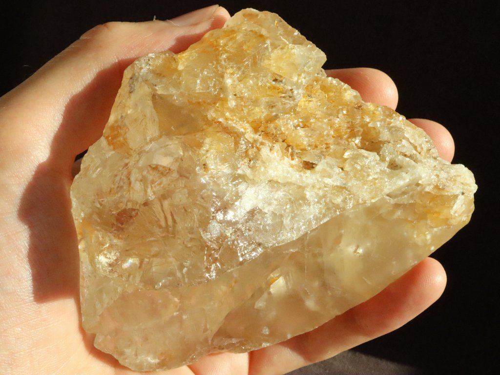 Větší kus surového citrínu / křišťálu s příměsí křemene - duhový odlesk