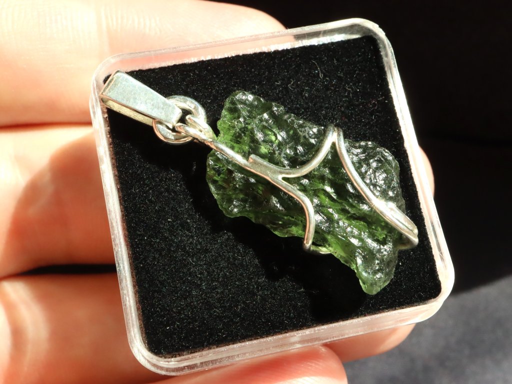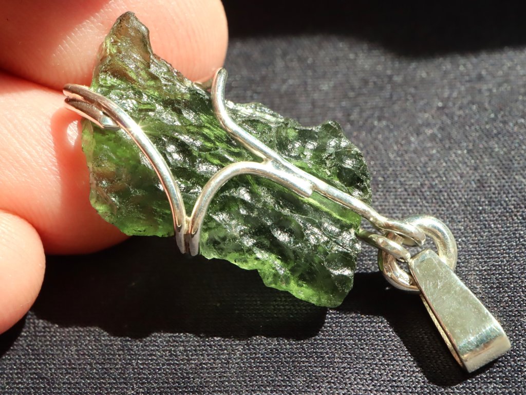 Uchycení kamene ve stříbře je čistě ruční práce, nejedná se tedy o žádnou strojní velkovýrobu a každý přívěsek je originál. Vltavín navíc není vrtaný ani žádným způsobem přilepený. Kamínek je pouze precizně opleten stříbrným drátkem, který pro něj vytvoří tzv. klícku, ve které bezpečně drží. Dražší přívěsky se navíc pyšní složitějším a propracovanějším řemeslným zpracováním či jsou decentně zdobené například kapičkami stříbra či jinými zajímavostmi. Mnohdy jsou v nich také zasazeny unikátní kameny.