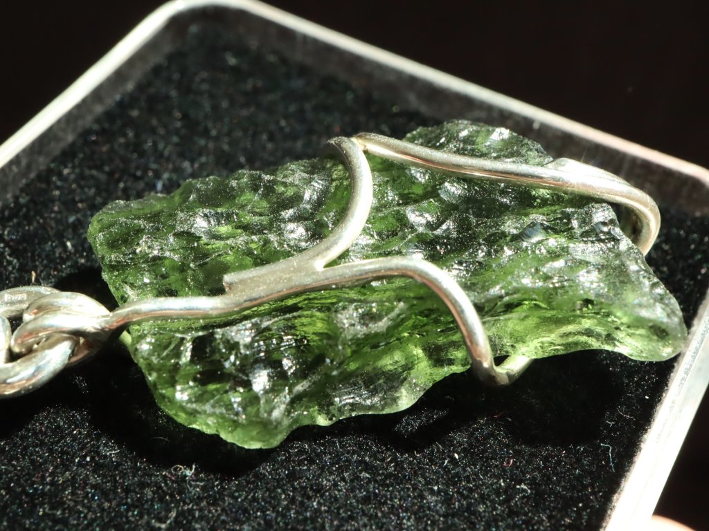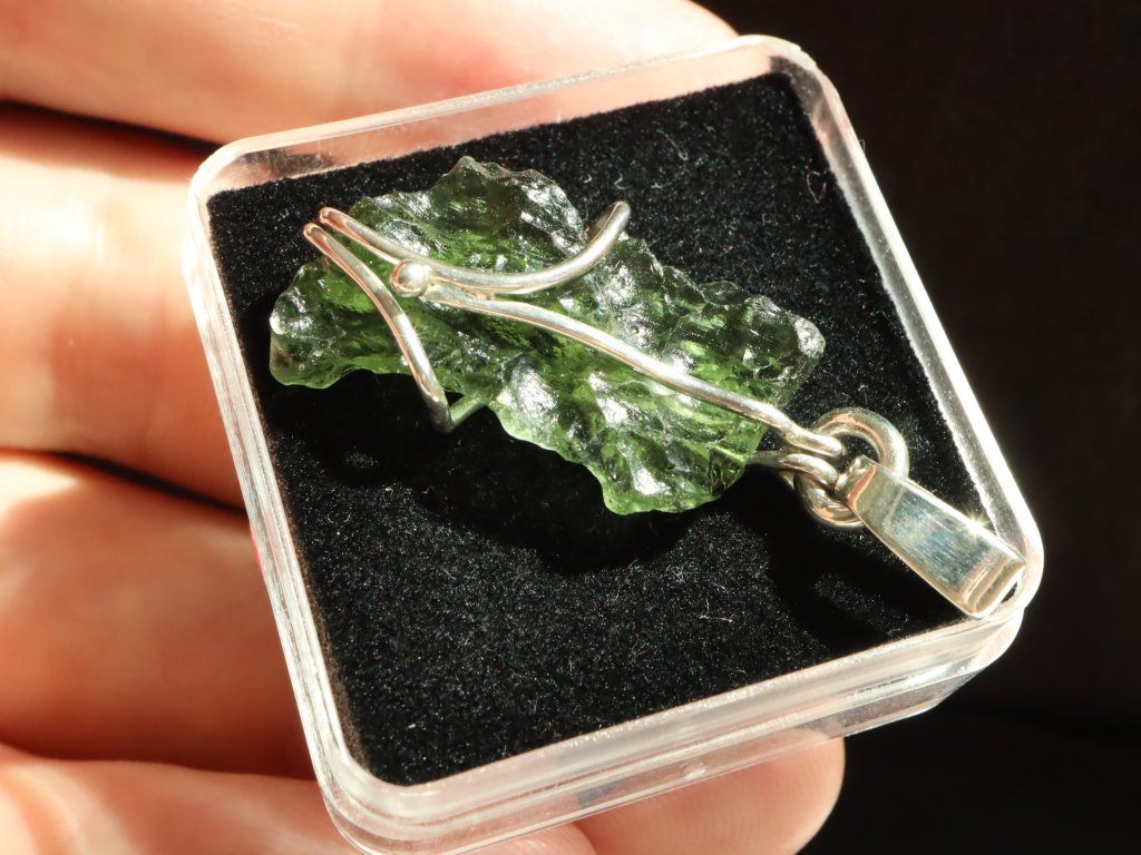Vltavín je originálně a precizně zasazen ve stříbře (925/1000). Jedná se o jedinečný šperk s čistě přírodním a surovým kamenem, který není žádným způsobem opracovaný a je ponechaný v původním stavu, ve kterém byl v naší přírodě námi nalezen.